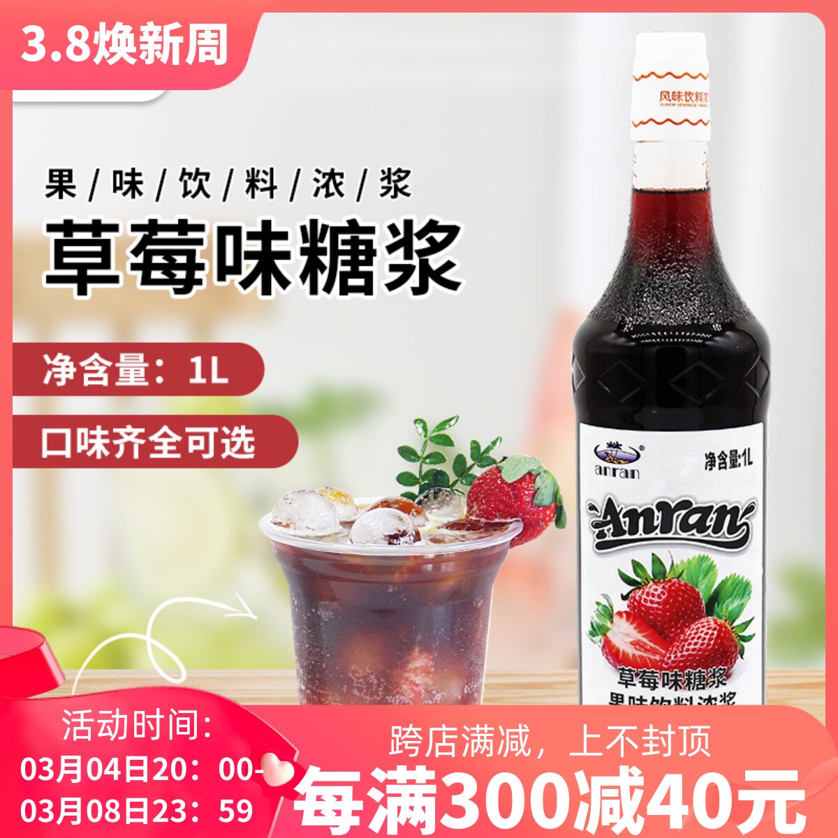 安然草莓风味糖浆1000ml 香蜜草莓果露气泡水苏打鸡尾酒专用果露