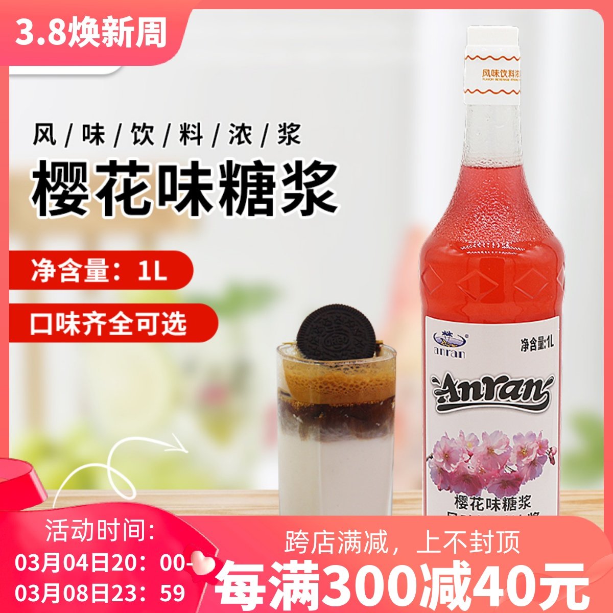 安然樱花糖浆粉色网红雪碧苏打气泡水鸡尾酒原料浓缩樱花香蜜1L
