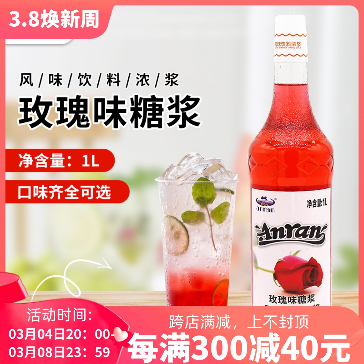 anran安然玫瑰风味糖浆/玫瑰果露1000ml苏打果茶调咖啡鸡尾酒饮料