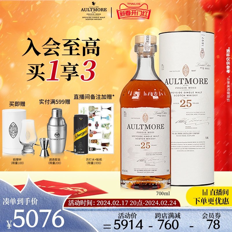 【官方直营】AULTMORE欧摩25年斯贝塞单一麦芽威士忌700ml