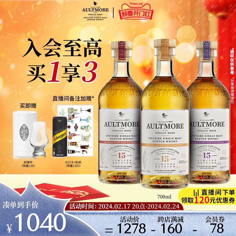 【官方直营】AULTMORE欧摩12年洋酒单一麦芽威士忌700ml