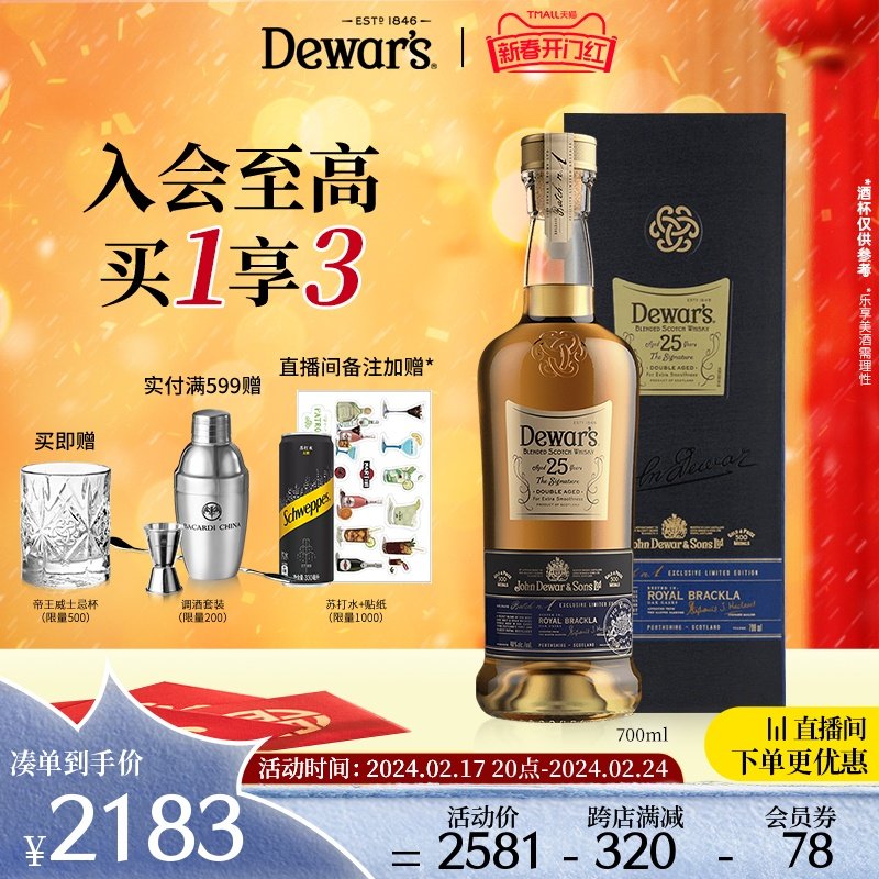 【官方直营】 Dewar's帝王威士忌洋酒25年调配苏格兰英国700ml