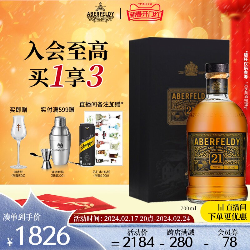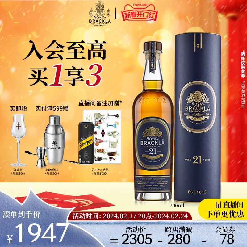 【官方直营】皇家布莱克拉威士忌洋酒21年单一麦芽威士忌700ml