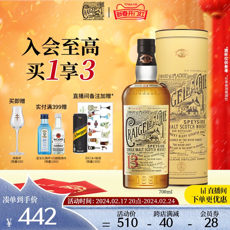 【官方直营】克莱嘉赫13年斯贝塞单一麦芽威士忌苏格兰700ml