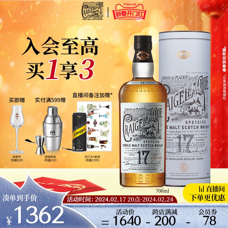 【官方直营】克莱嘉赫17年单一麦芽威士忌洋酒苏格兰进口700ml