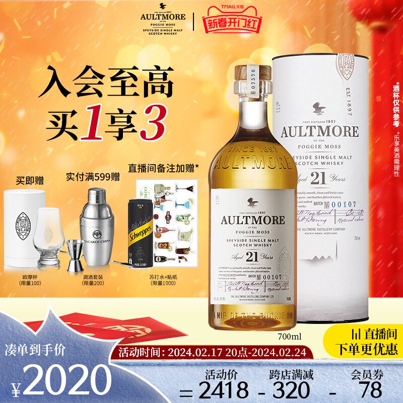 【官方直营】AULTMORE欧摩21年斯贝塞单一麦芽威士忌700ml