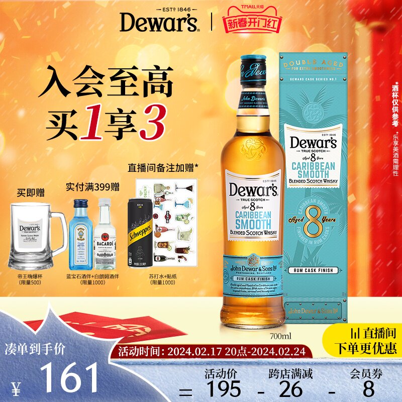 【官方直营】Dewar's帝王8年日本水楢桶致顺调和威士忌嗨爆