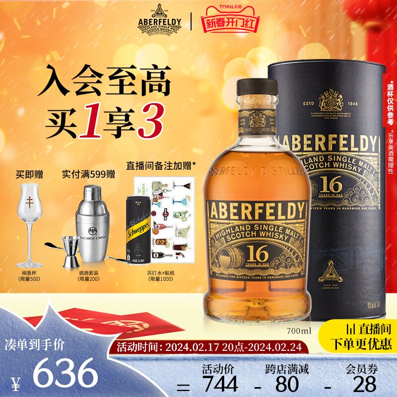 【官方直营】艾柏迪威士忌洋酒16年苏格兰单一麦芽威士忌700ml