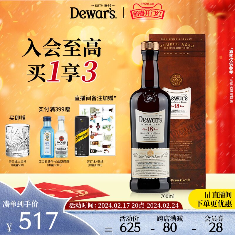 【官方直营】Dewar's帝王威士忌洋酒18年调配苏格兰威士忌