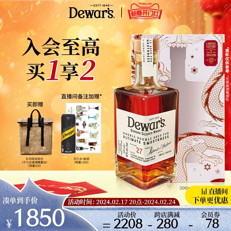 【官方直营】 Dewar's帝王27年调配苏格兰威士忌500ML四次陈酿
