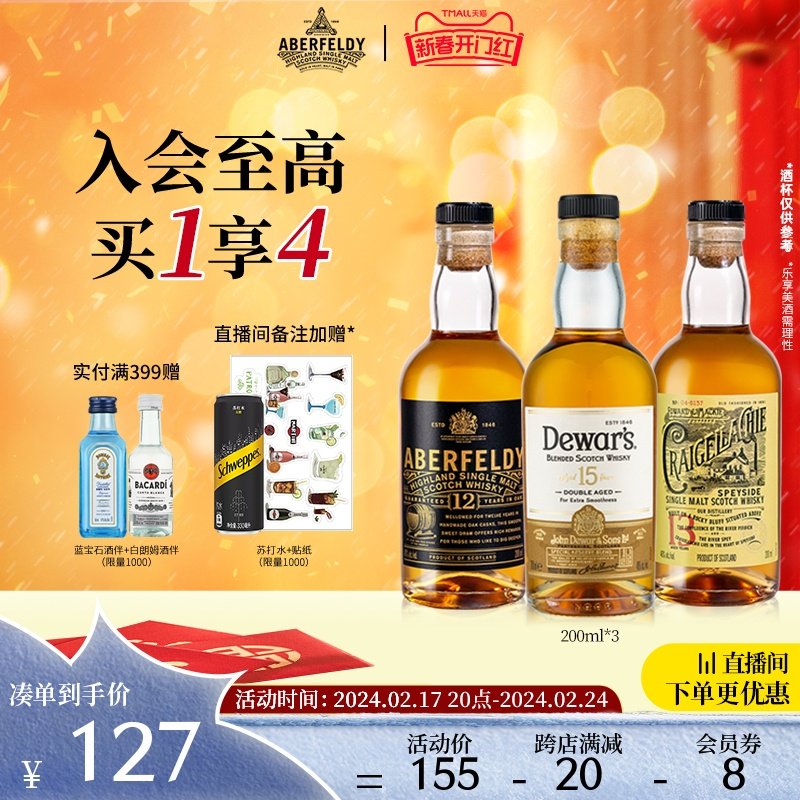 【官方直营】Dewar's帝王威士忌洋酒12年威士忌700ml调酒纯饮