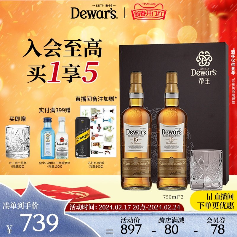 【官方直营】帝王威士忌洋酒15年苏格兰750ml新老包装发货调酒