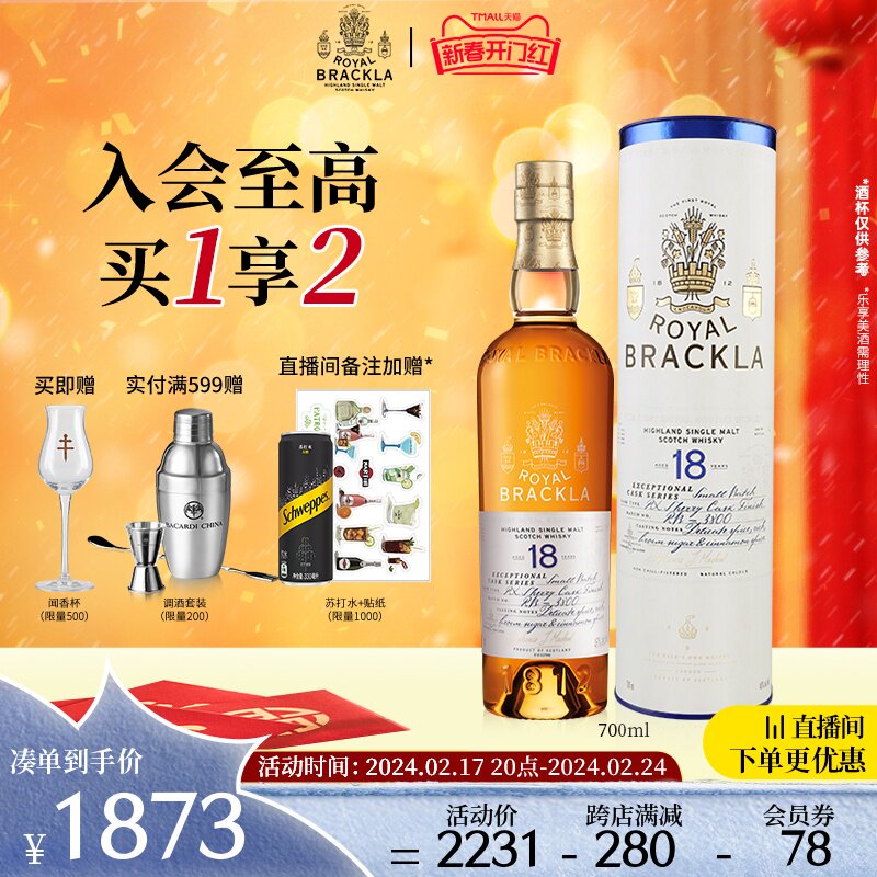 【官方直营】皇家布莱克拉18年单一麦芽苏格兰威士忌小批次PX桶