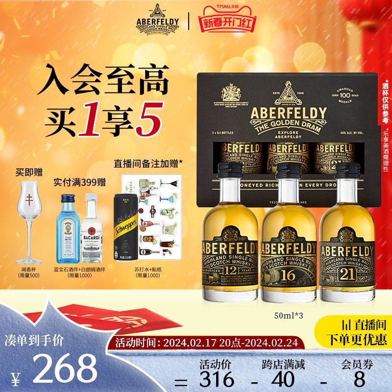 【官方直营】艾柏迪12年16年21年单一麦芽威士忌50ml*3礼盒装