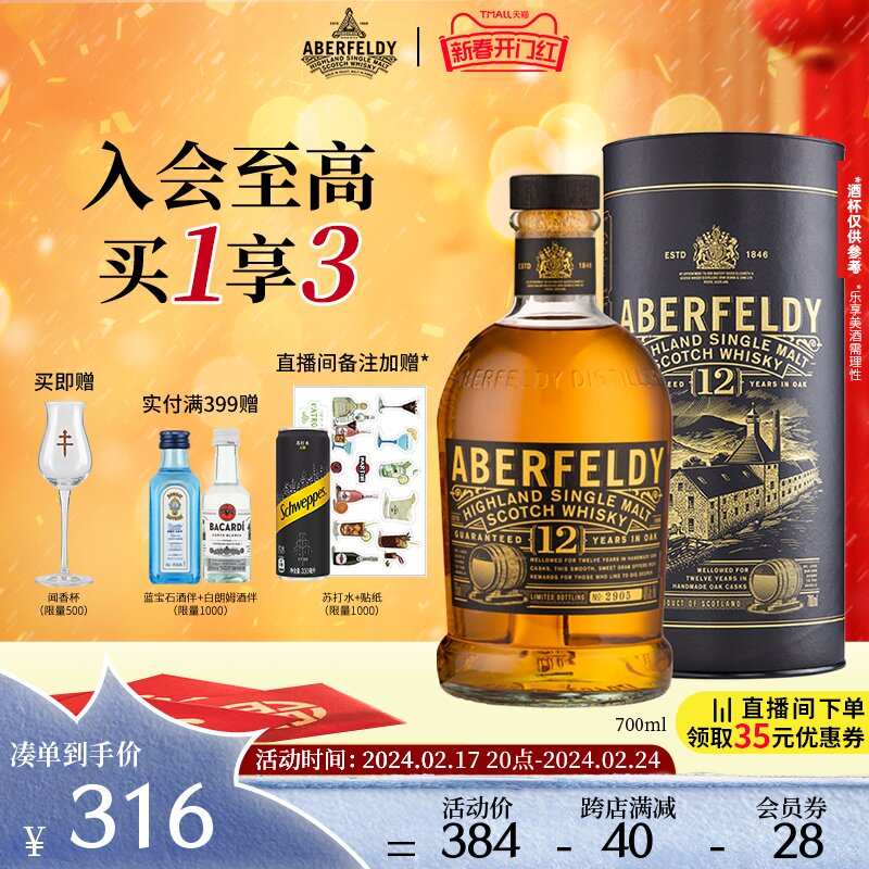 【官方直营】艾柏迪洋酒12年苏格兰单一麦芽威士忌700ml