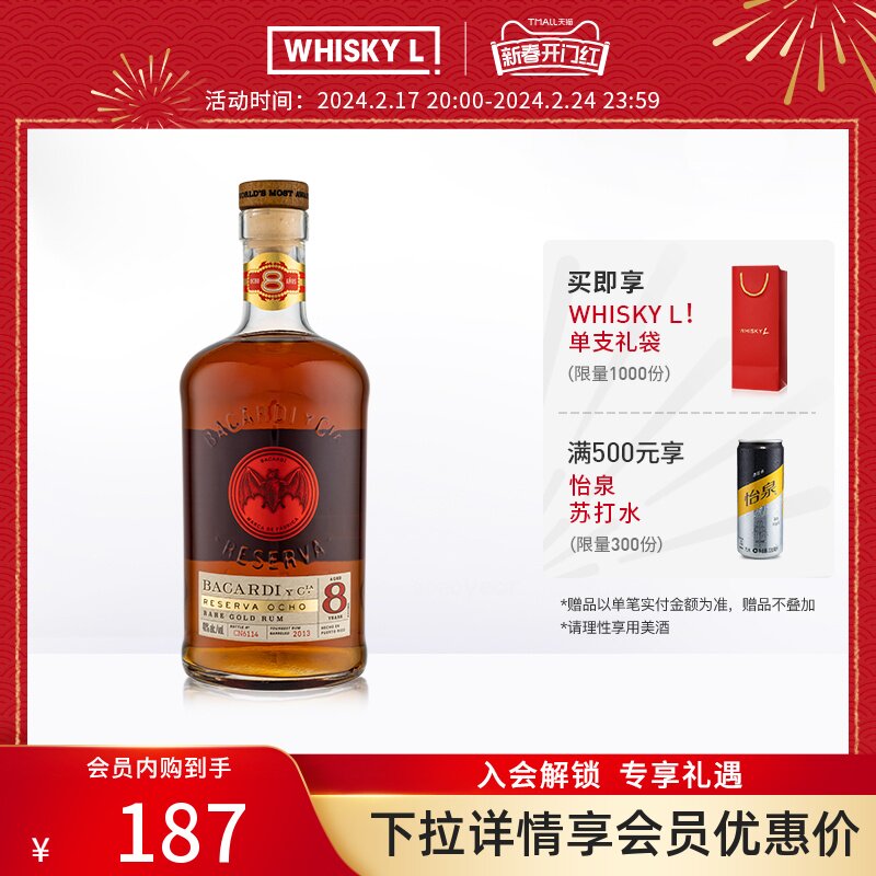 【官方直营】Bacardi百加得八年陈酿朗姆酒送礼调酒750ml