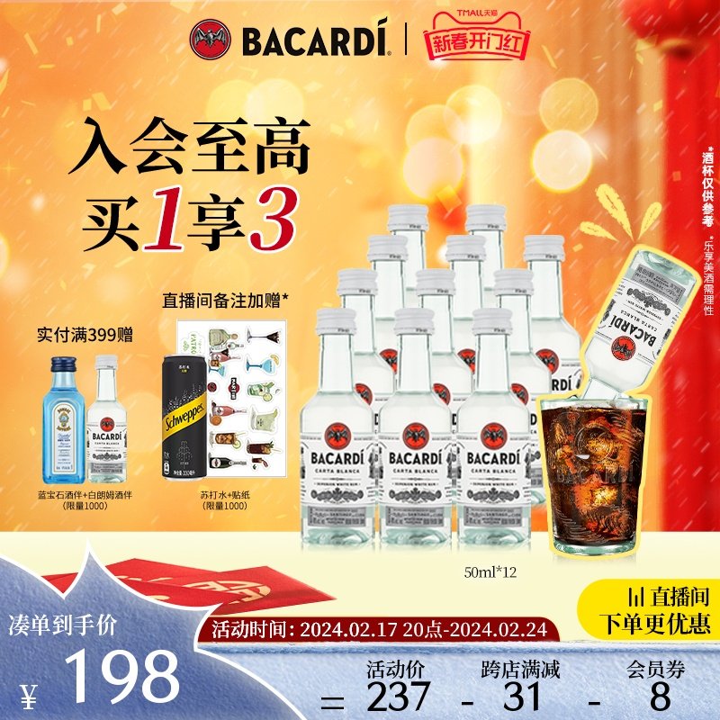 百加得白朗姆酒50ml*12组合套装便利店露营调酒迷你小酒伴