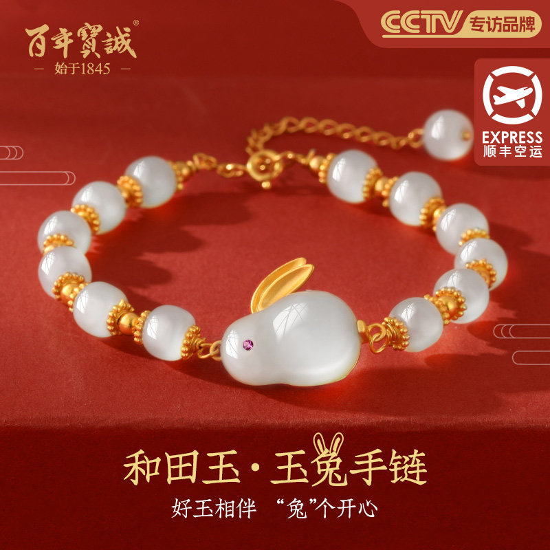 玉兔和田玉手串女款本命年纯银玉石手链叠戴生日情人节礼物送女友