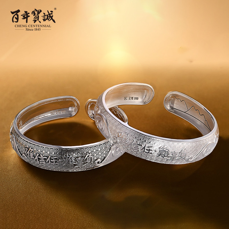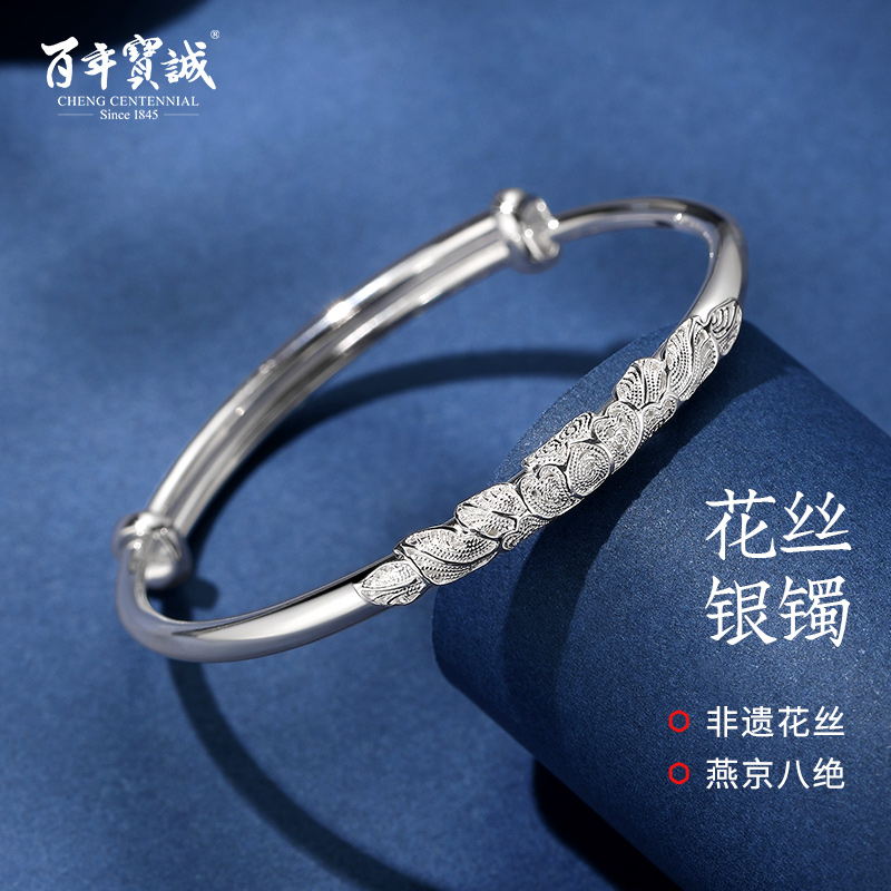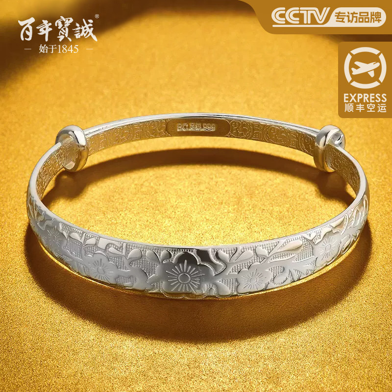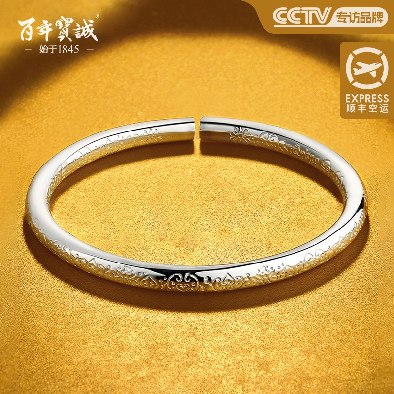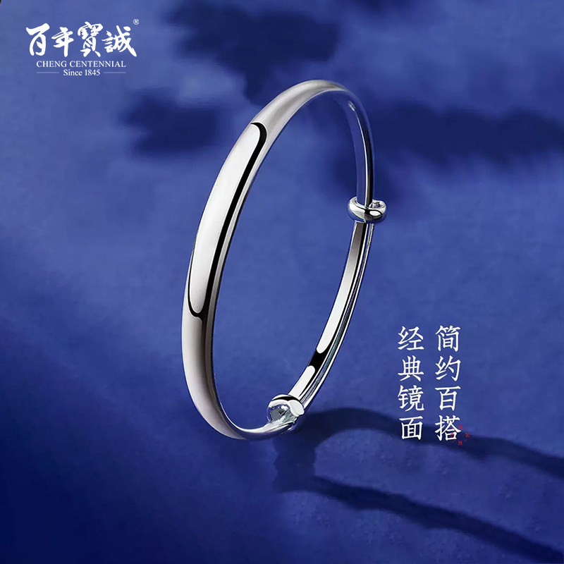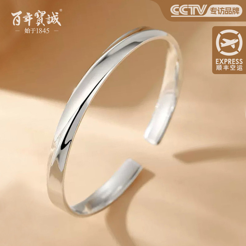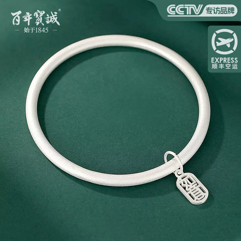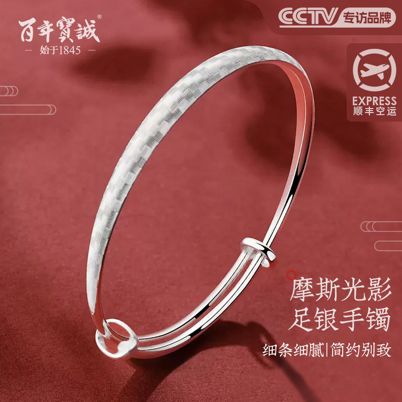 百年宝诚如意福纯手镯开口可调节细款银饰手镯999足银送女友手镯