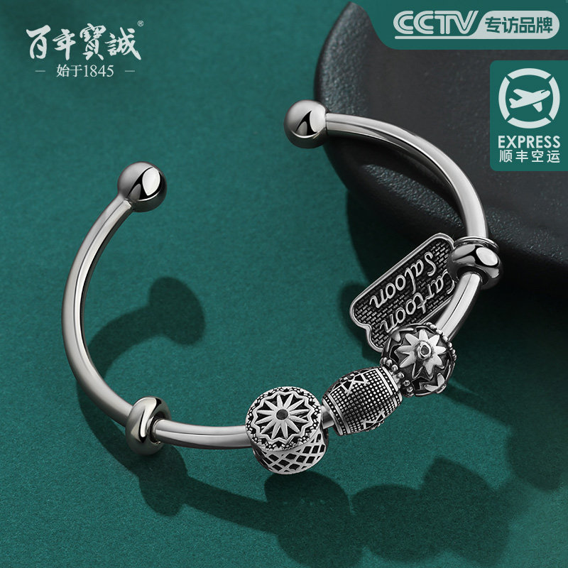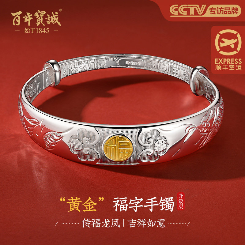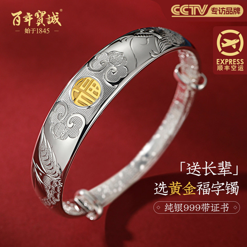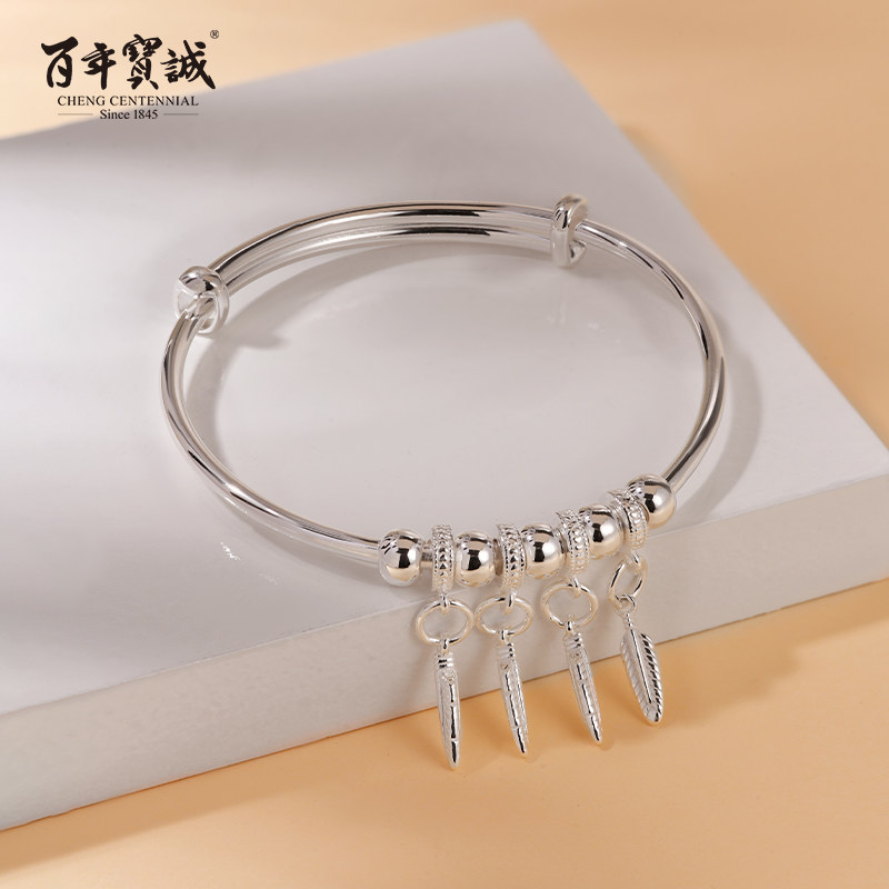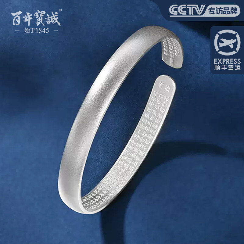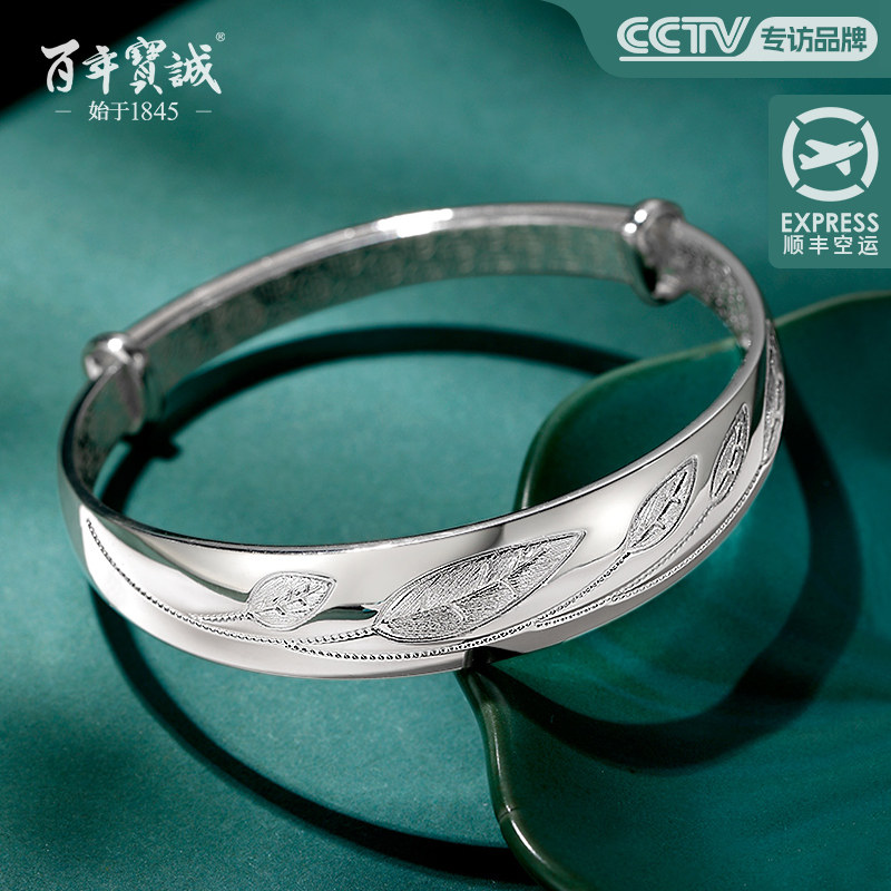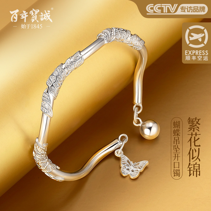 百年宝诚如意福纯手镯开口可调节细款银饰手镯999足银送女友手镯