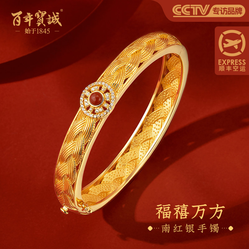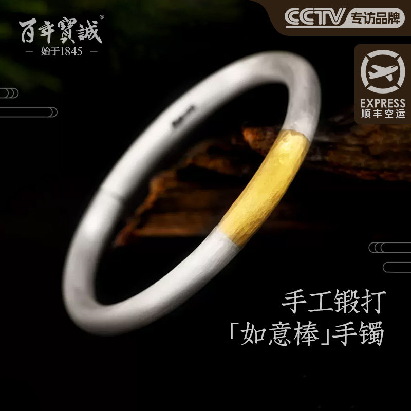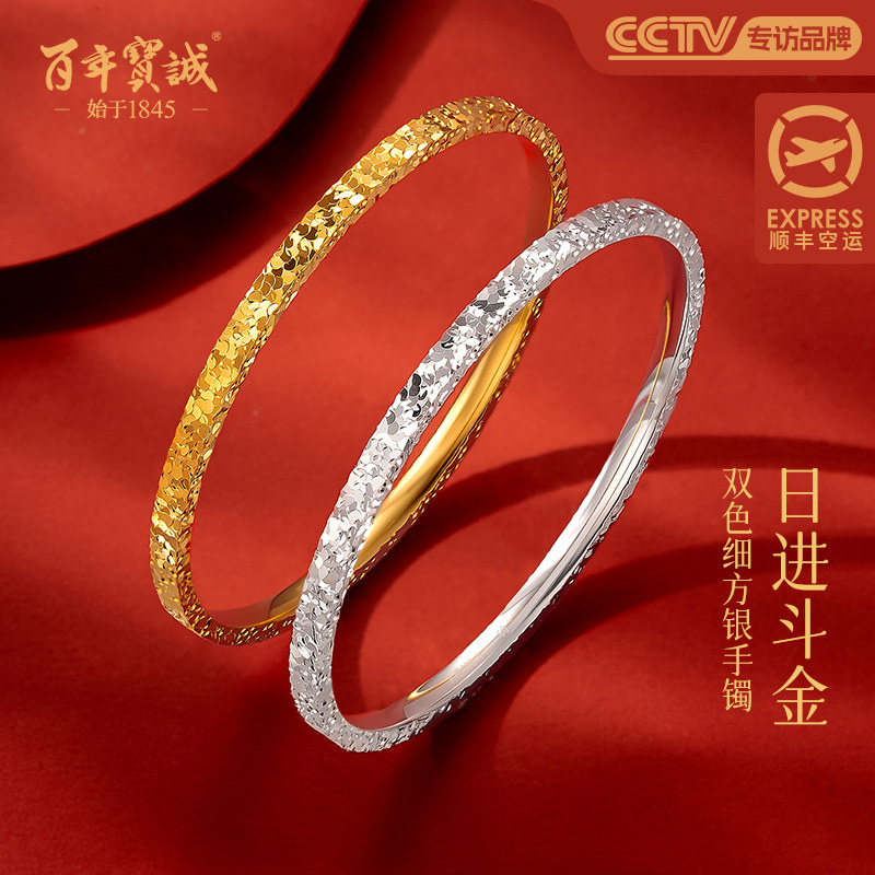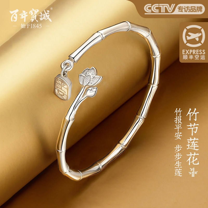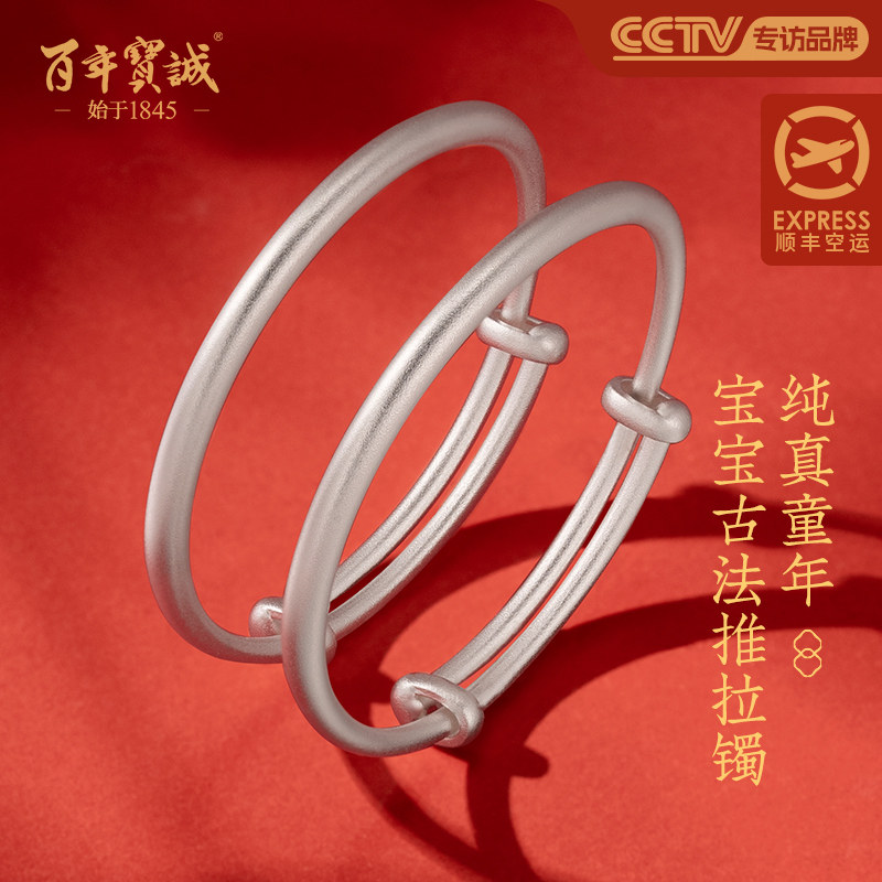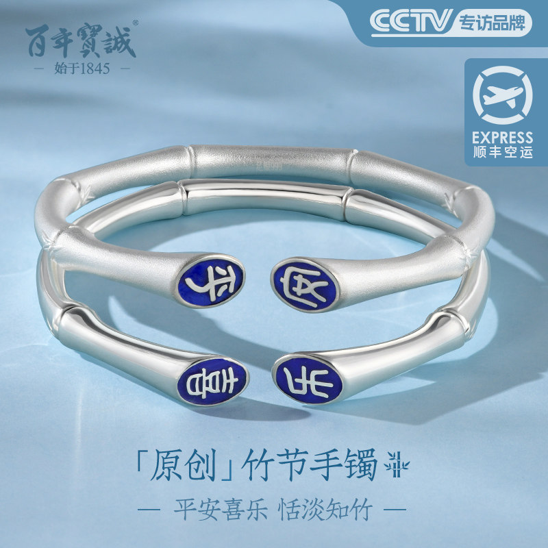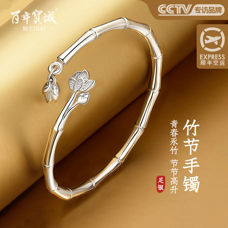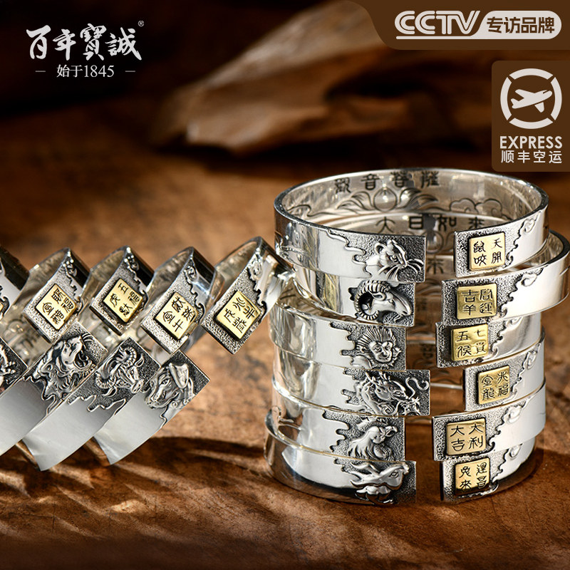 百年宝诚如意福纯手镯开口可调节细款银饰手镯999足银送女友手镯