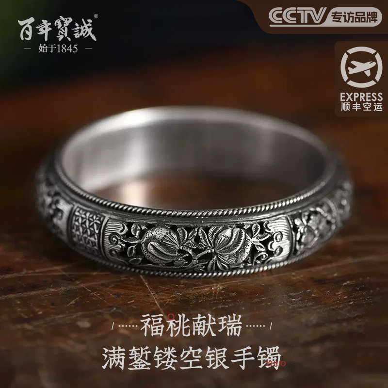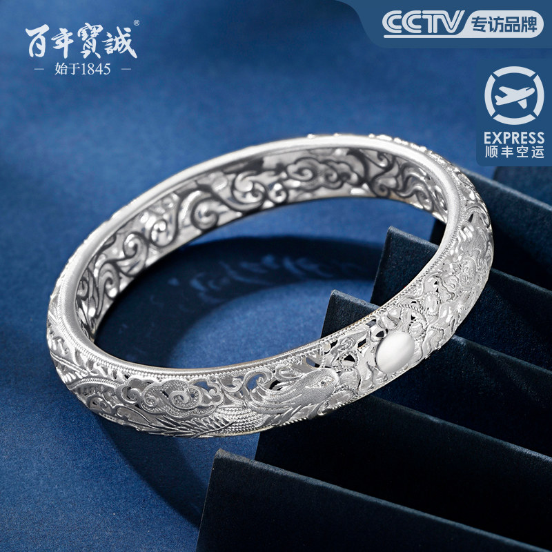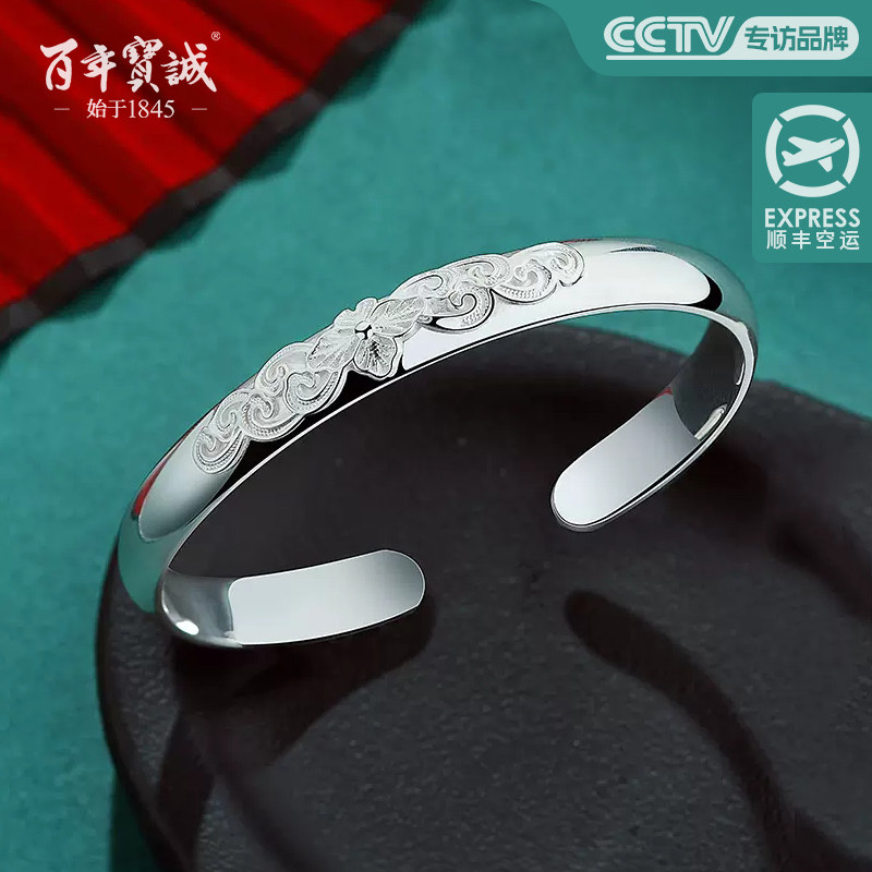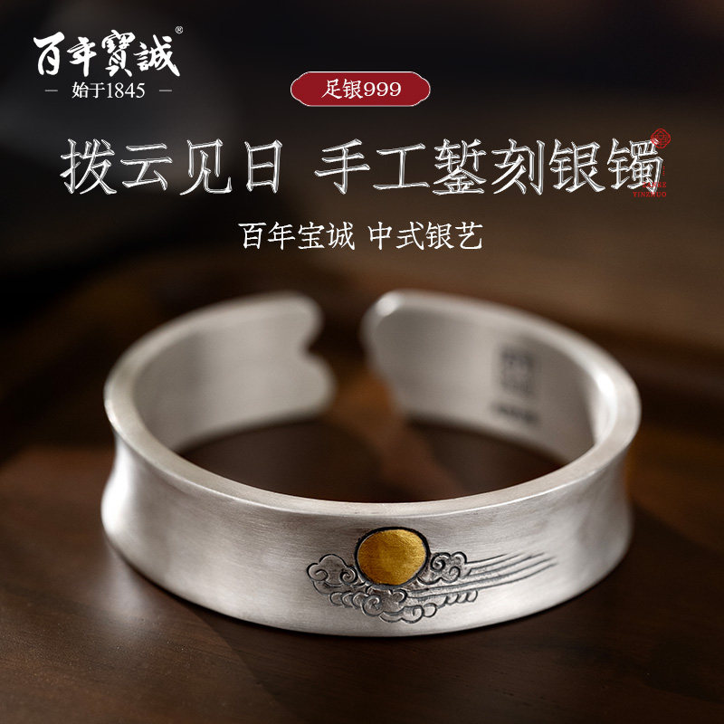 百年宝诚原创唯信任难辜负足银手镯女宽开口祥云送长辈纯银镯子