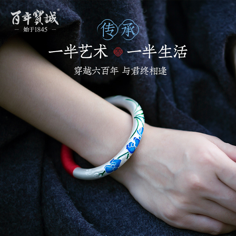 非遗古法景泰蓝纯银手镯女999纯银珐琅彩手镯银手环三八节送女友