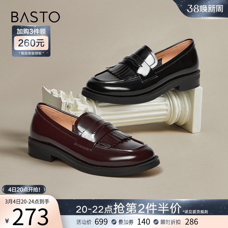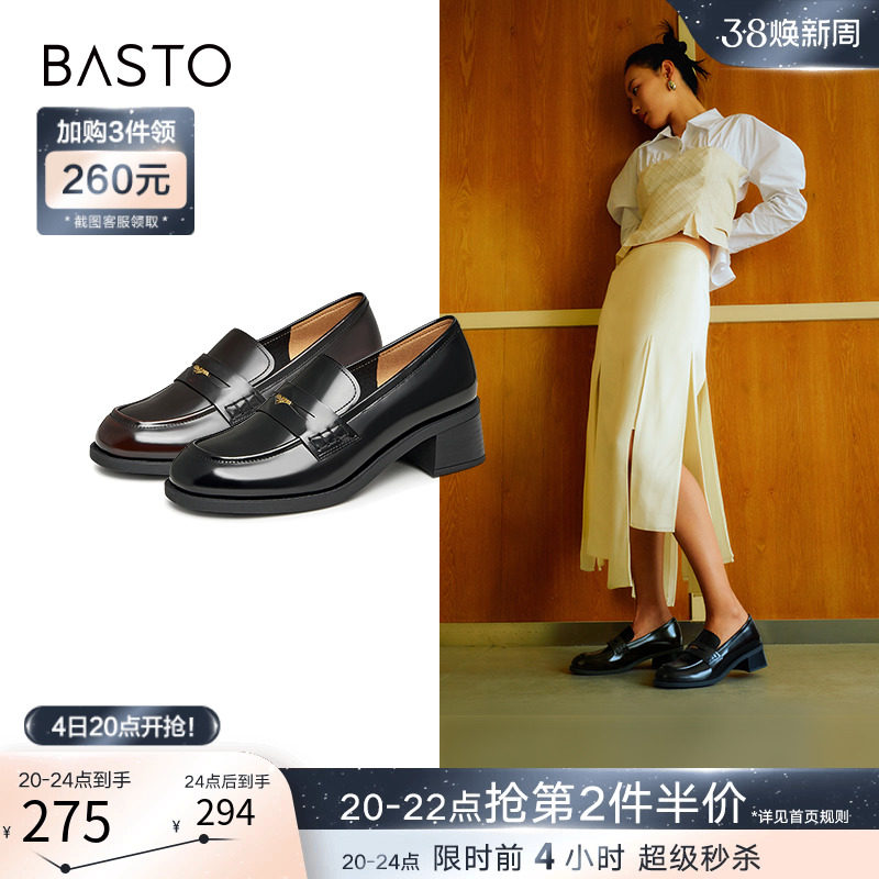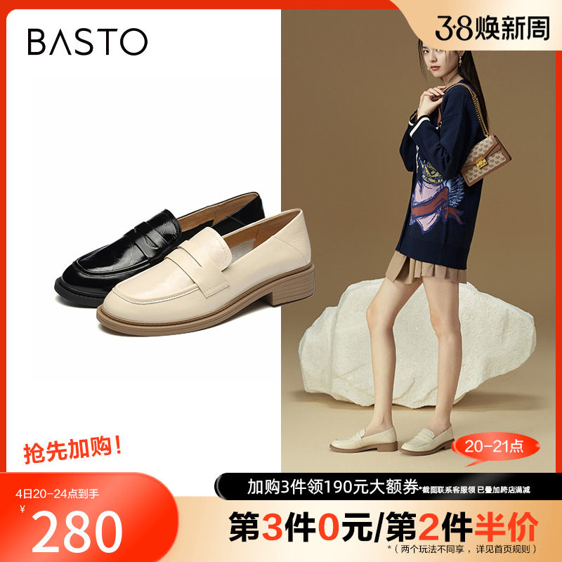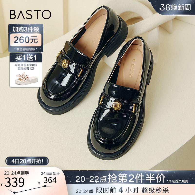 百思图24春新款英伦学院风金币乐福鞋粗跟女小皮鞋单鞋A1121AA4
