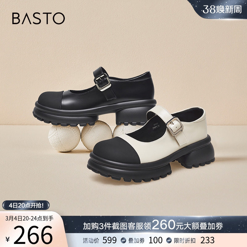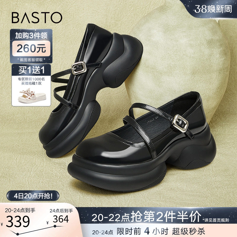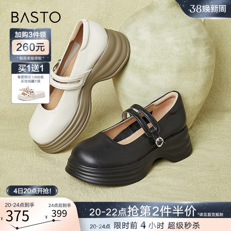 百思图夜色玛奇莲2024春商场新款厚底玛丽珍小皮鞋女单鞋TQ322AQ4