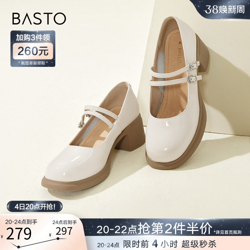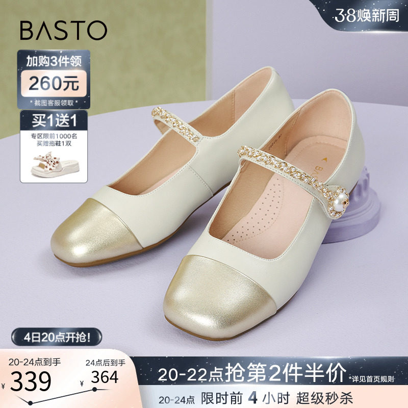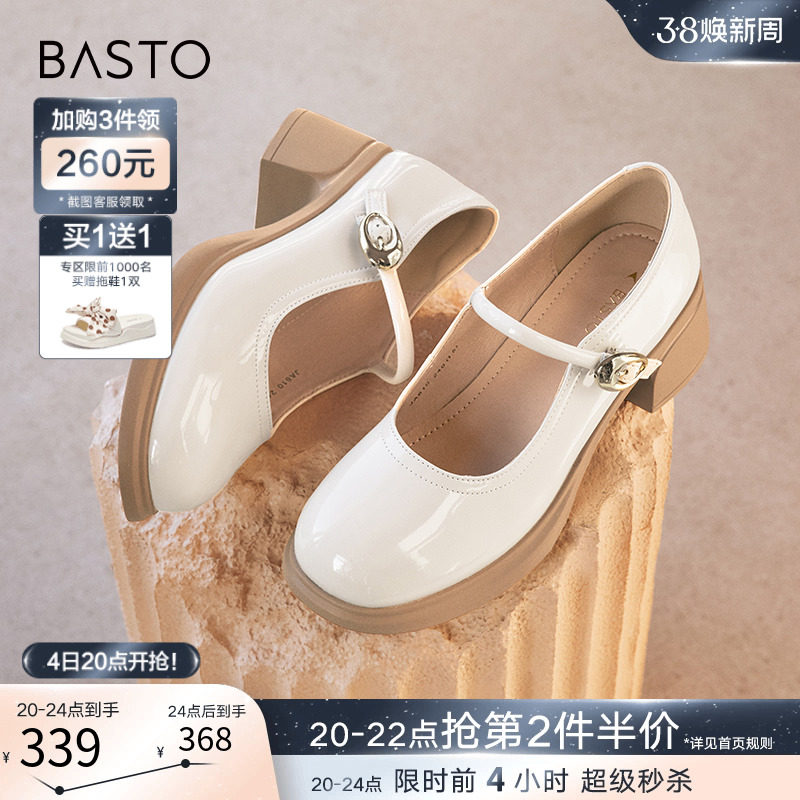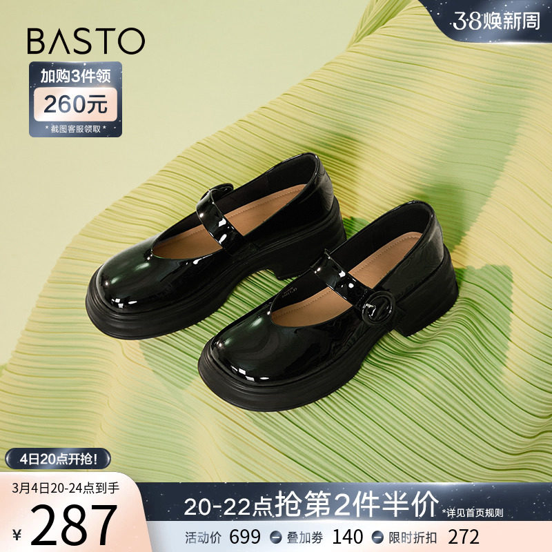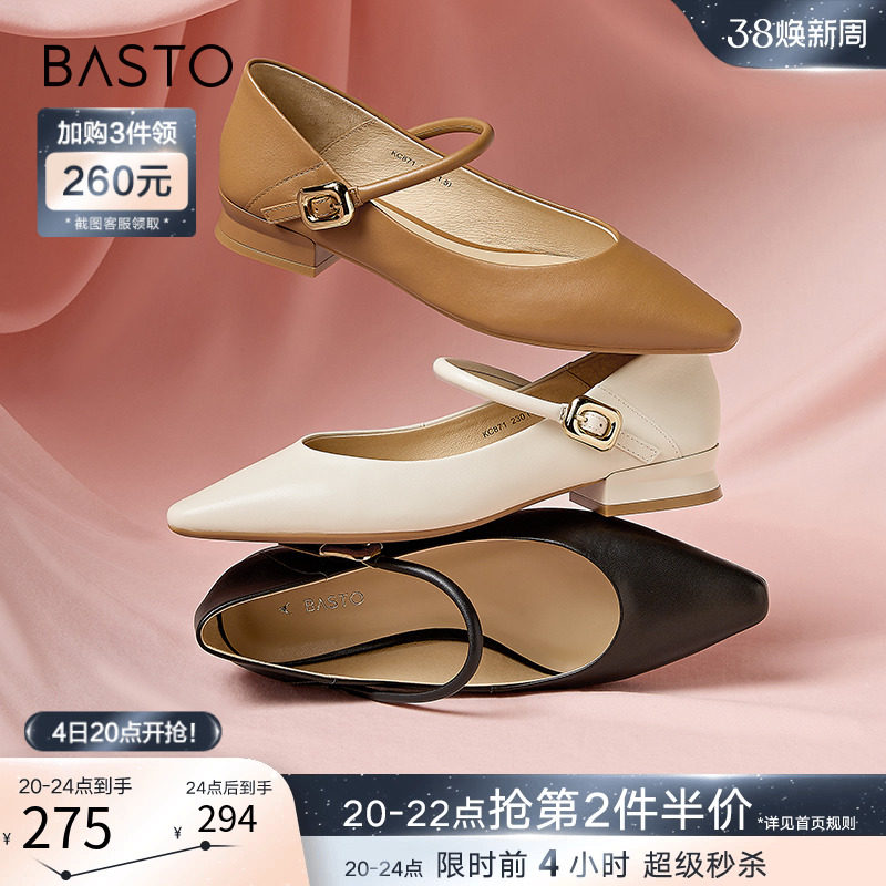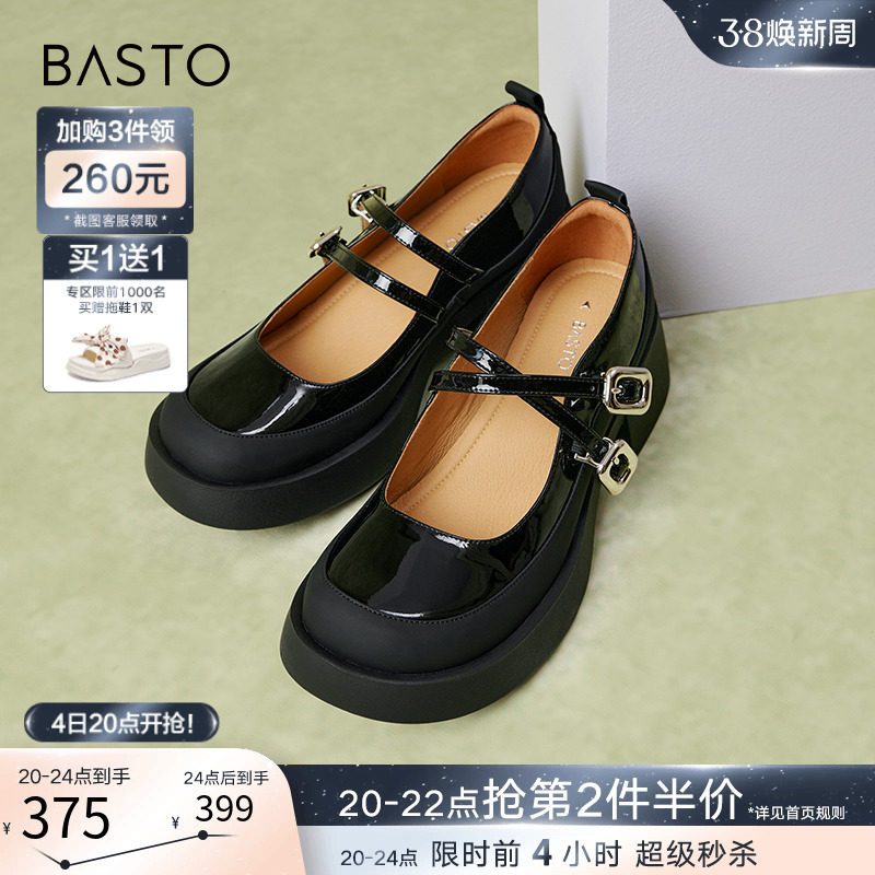 百思图晨曦之舞2024春商场新款法式玛丽珍鞋小皮鞋女单鞋JA610AQ4