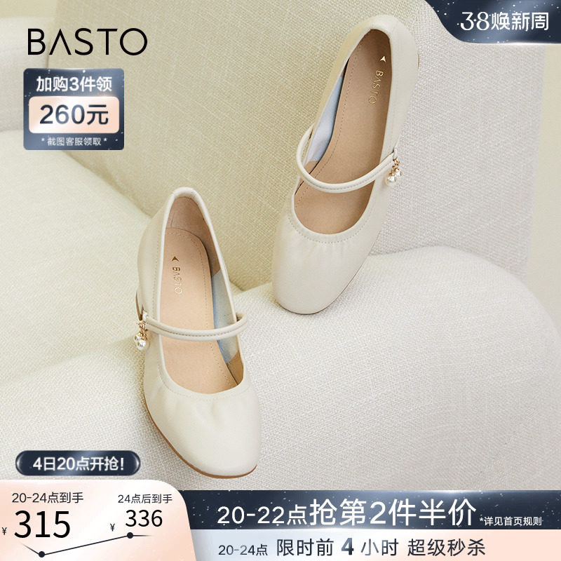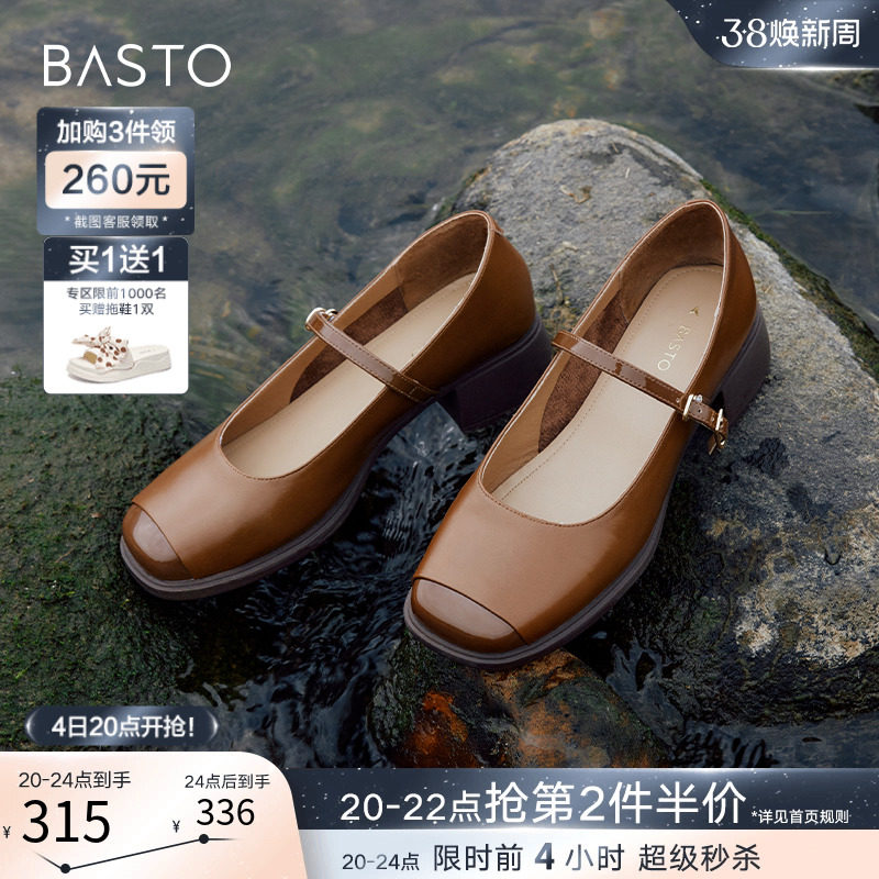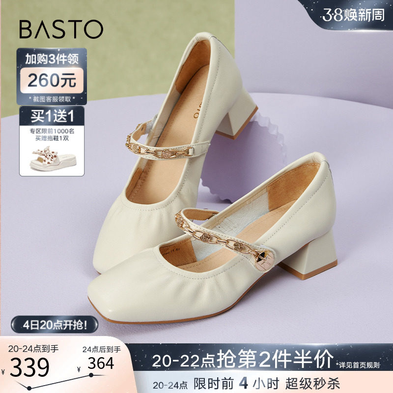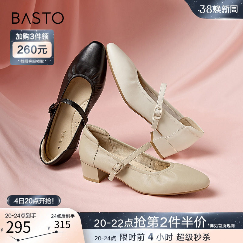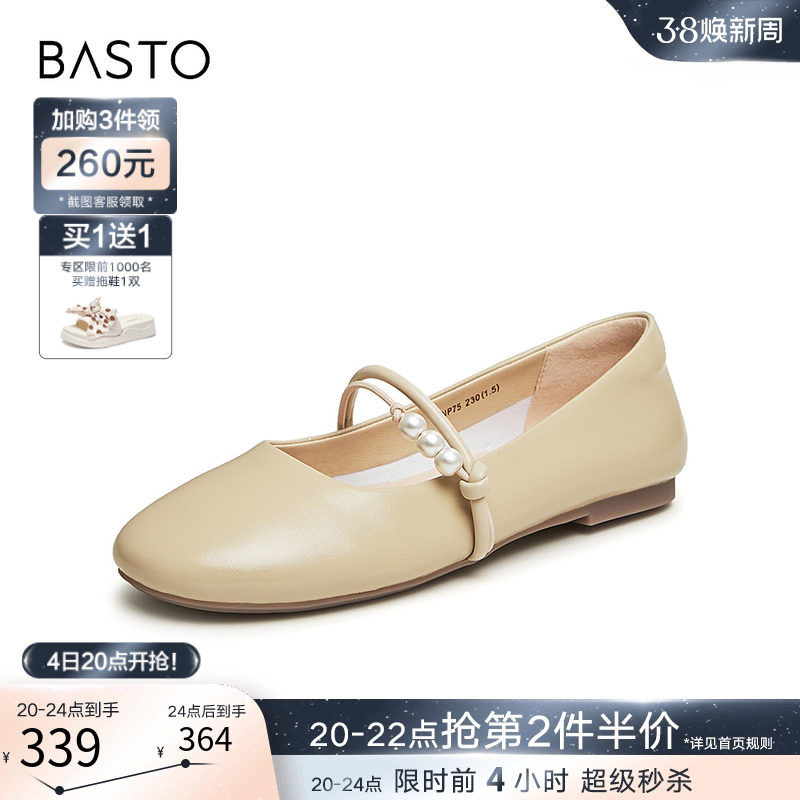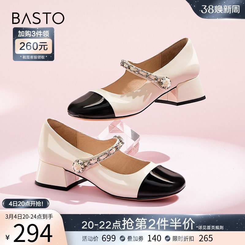 百思图晨曦之舞2024春商场新款法式玛丽珍鞋小皮鞋女单鞋JA610AQ4