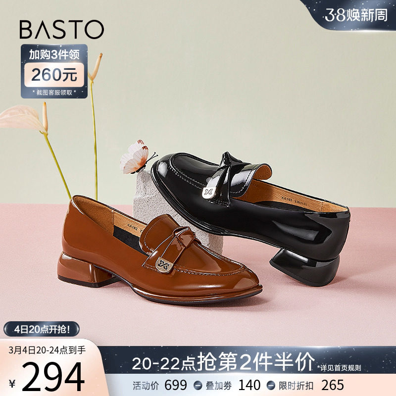 百思图24春商场新款超软羊皮乐福鞋亮面小皮鞋女深口单鞋A1332AA4
