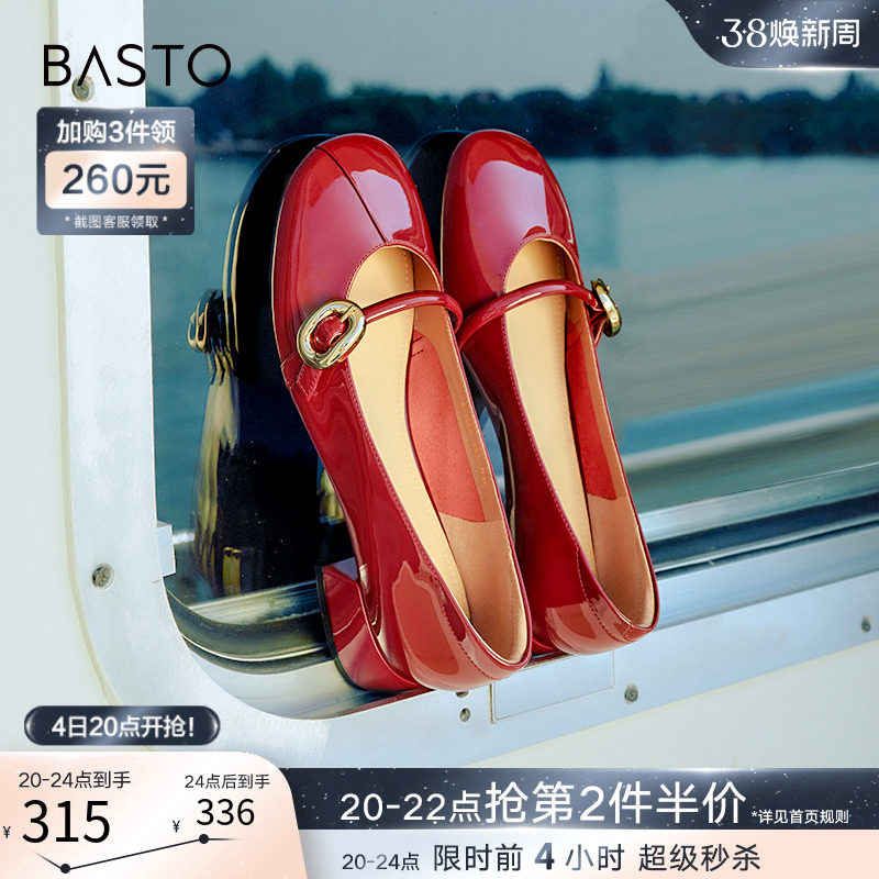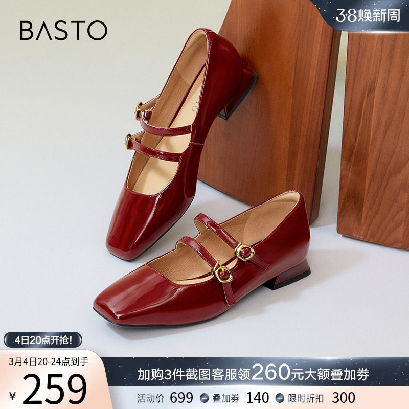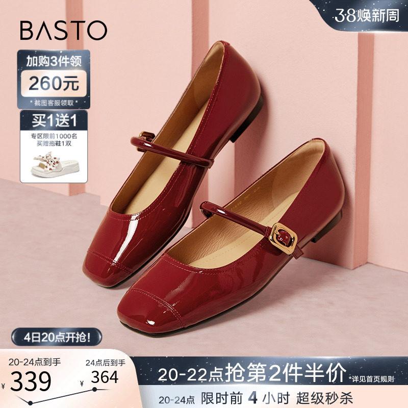 百思图莫奈花园24春季新款法式红色玛丽珍鞋小皮鞋女单鞋M3173AQ4