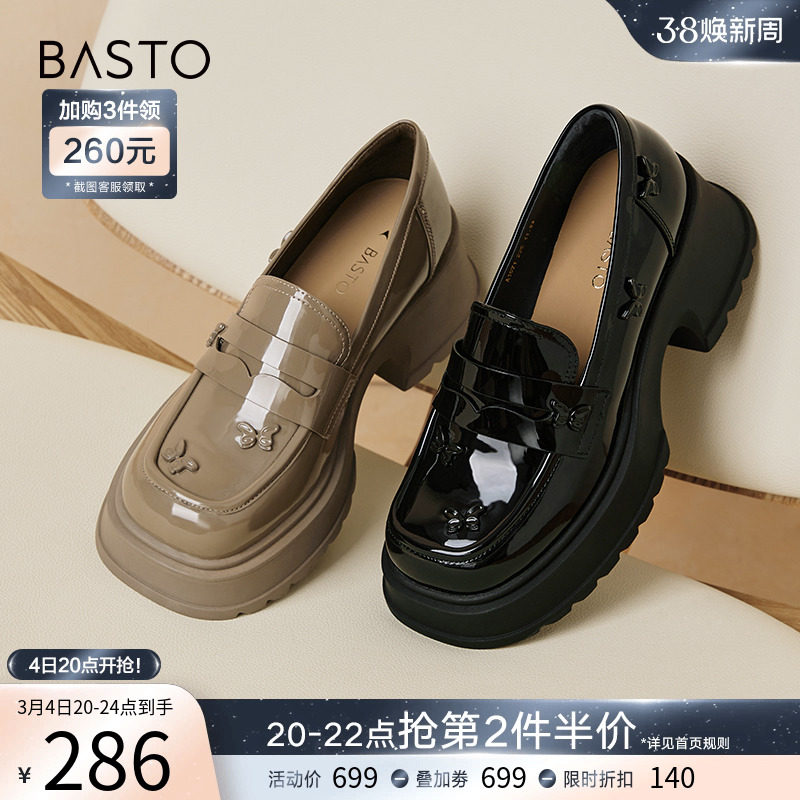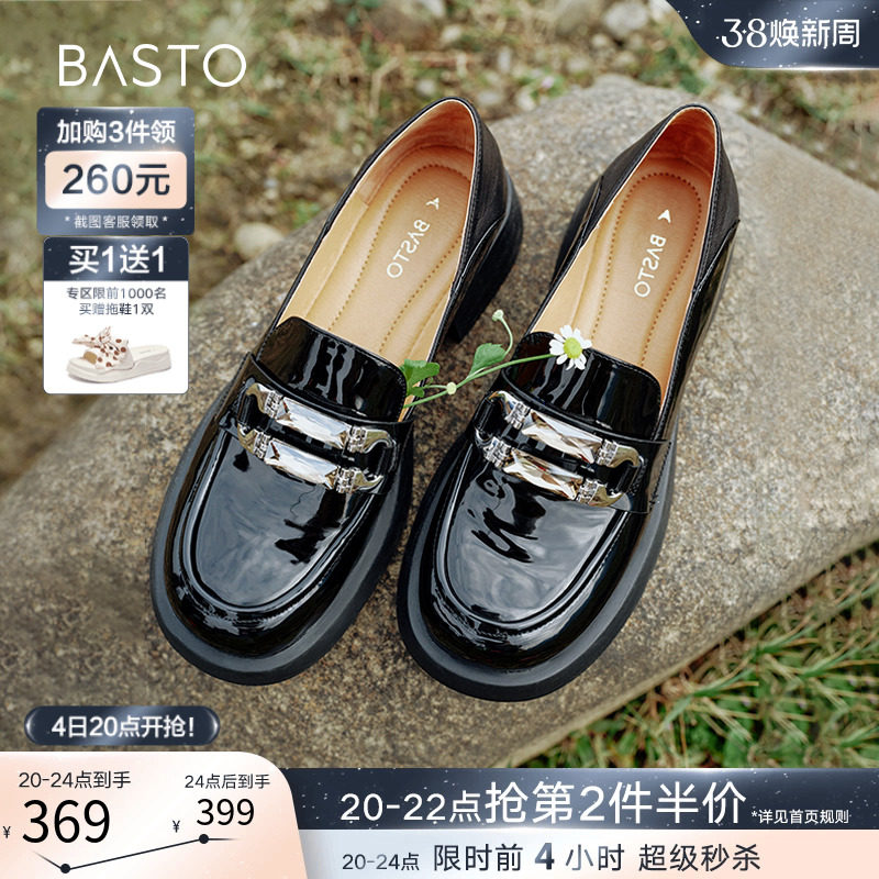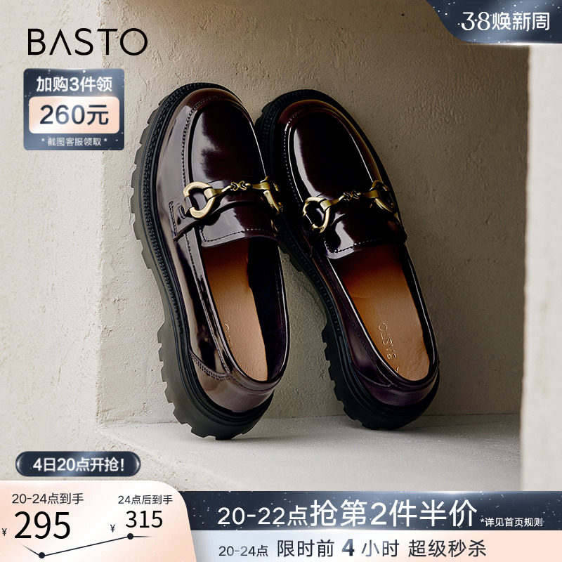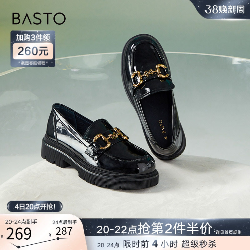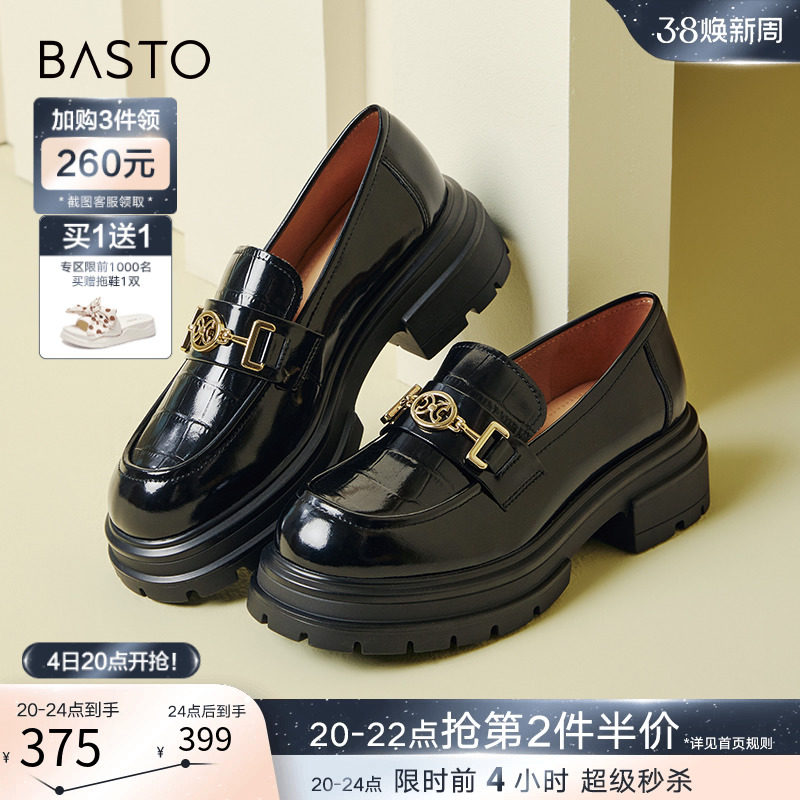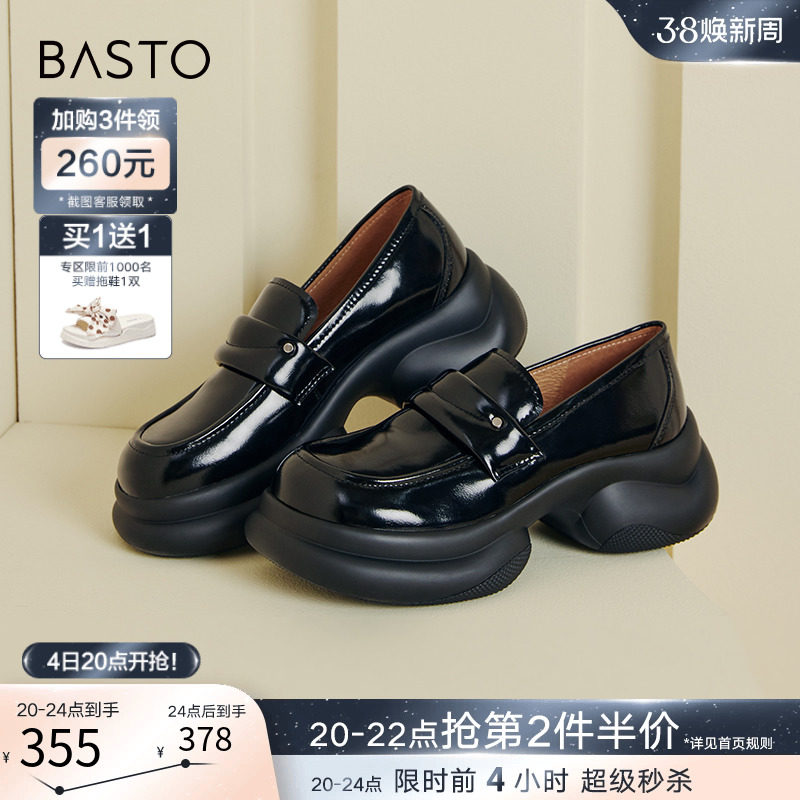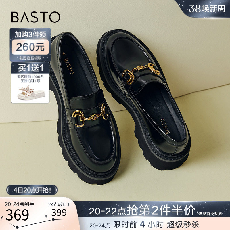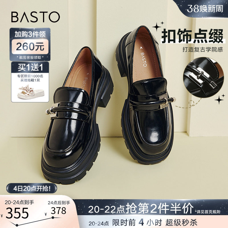 百思图24春商场新款英伦风厚底乐福鞋皮鞋女单鞋大小码TFW85AA4