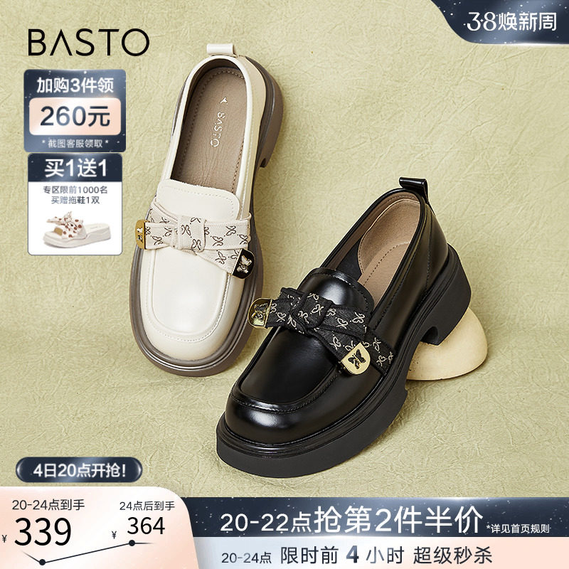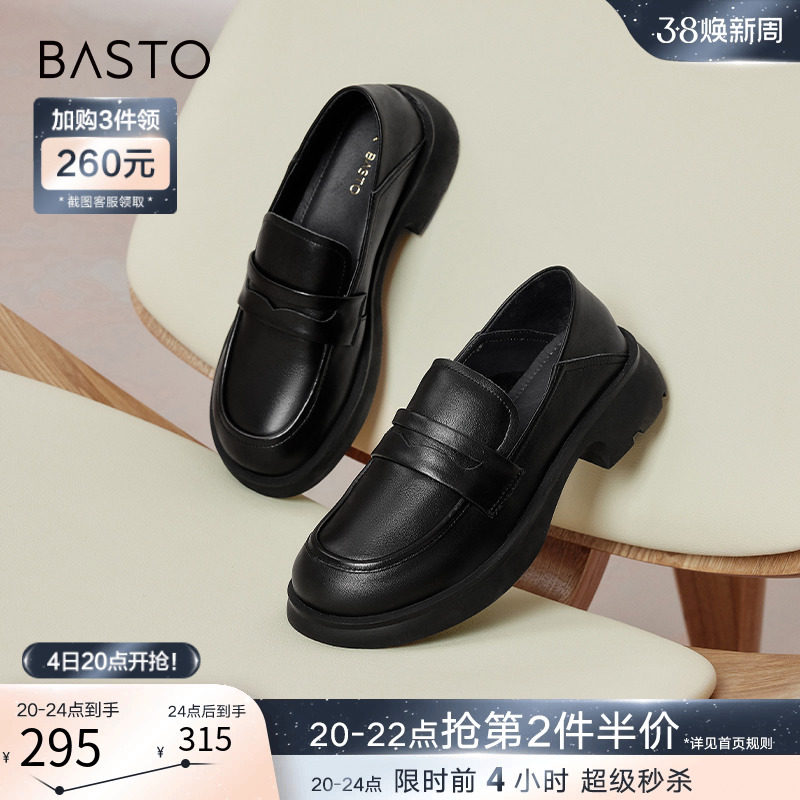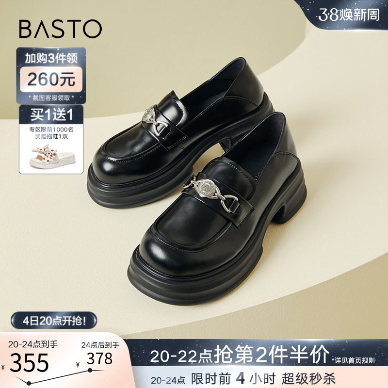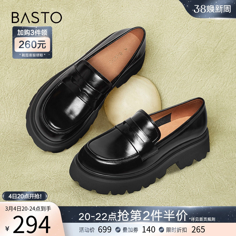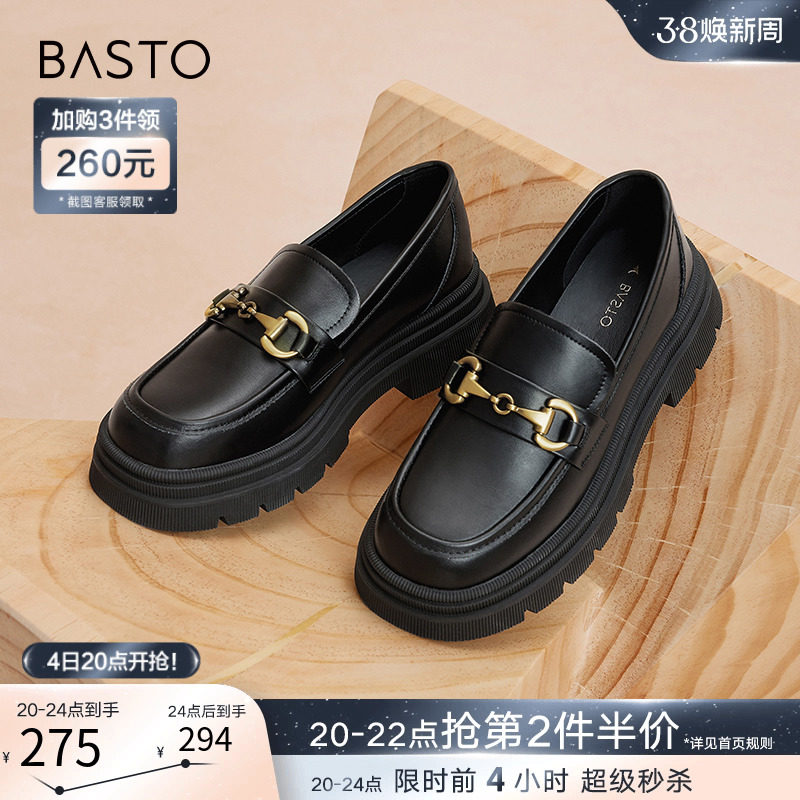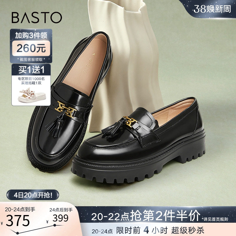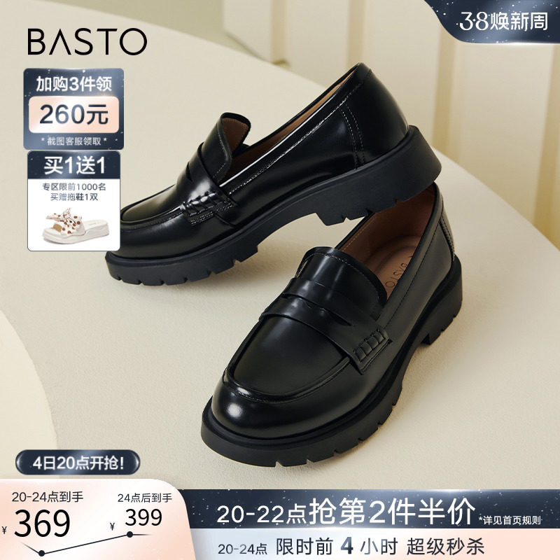 百思图24春商场新款真皮厚底英伦小个子乐福鞋皮鞋女单鞋VWZ01AA4