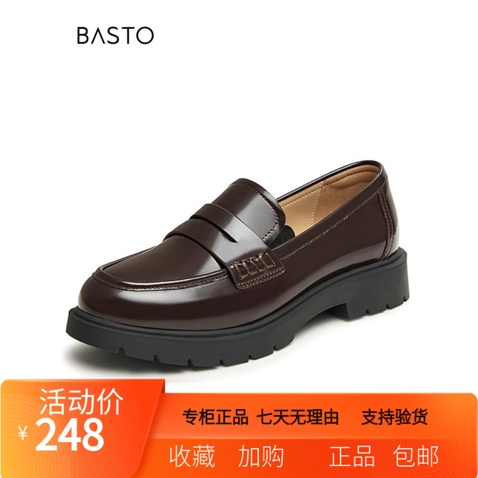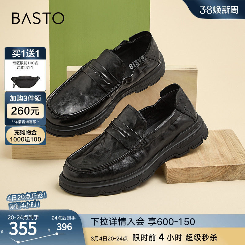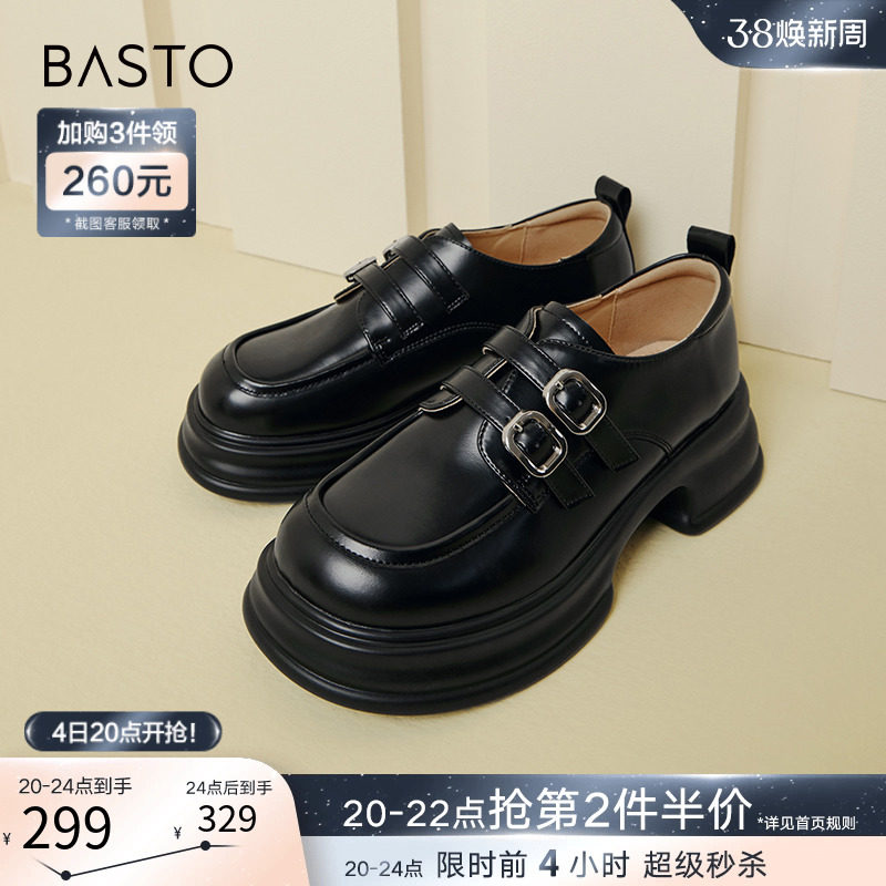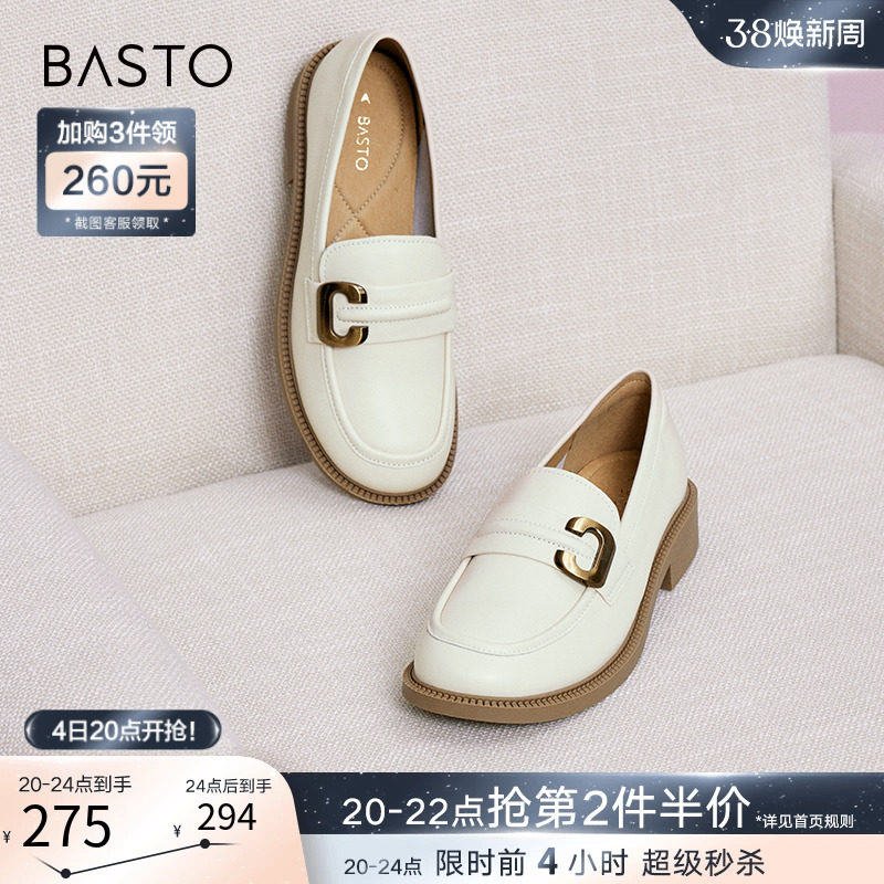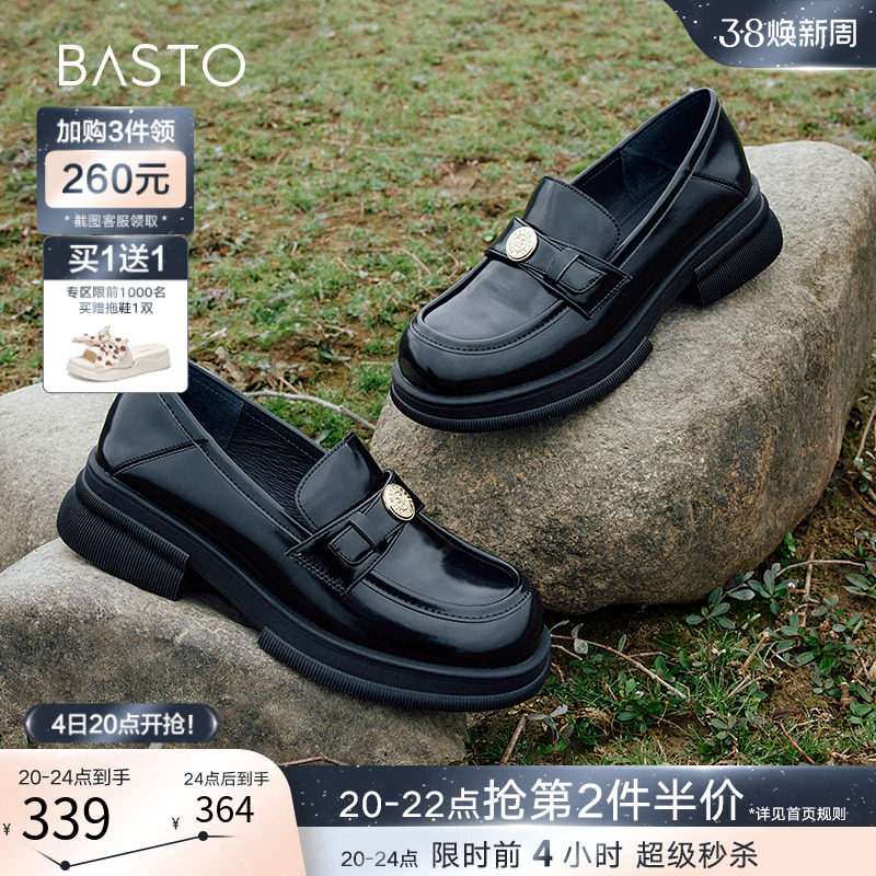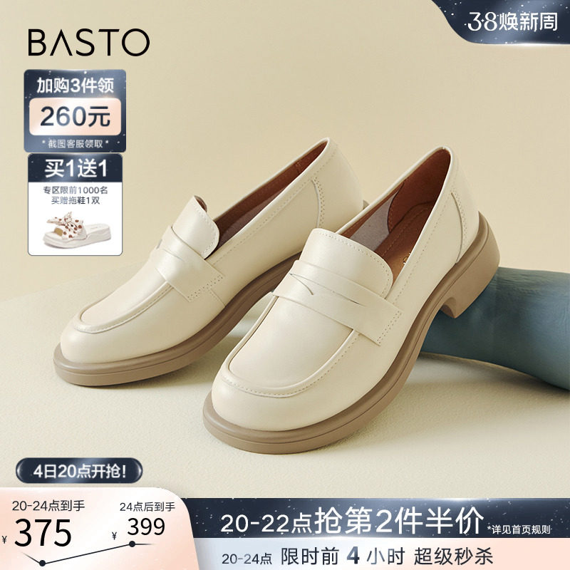 百思图24春商场新款真皮厚底英伦小个子乐福鞋皮鞋女单鞋VWZ01AA4