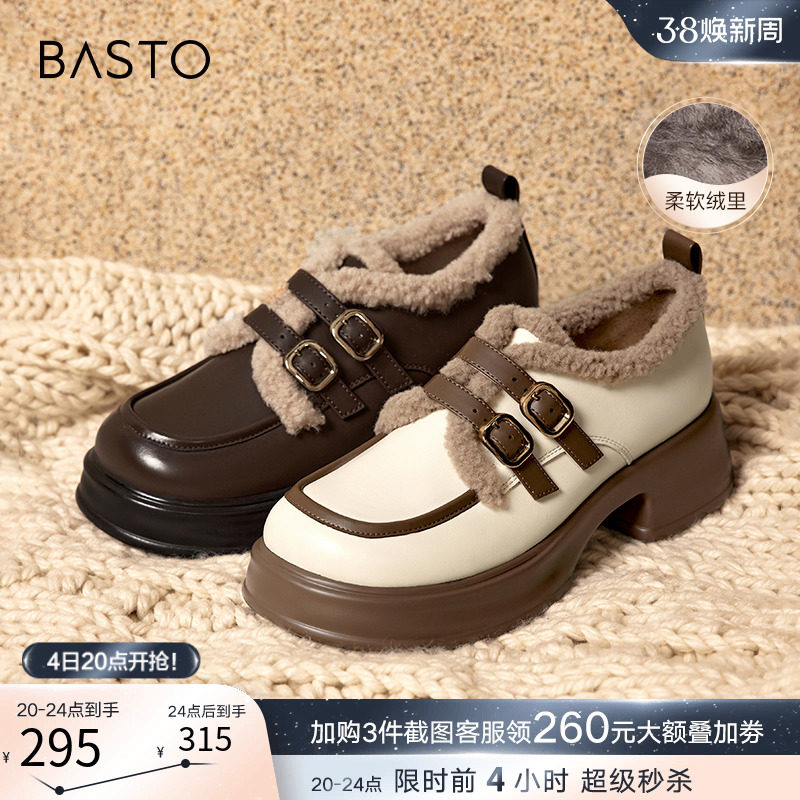 百思图23冬季新厚底加绒乐福鞋毛毛鞋外穿皮鞋女棉鞋单鞋WD865DM3