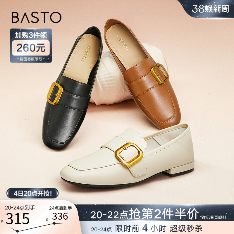 百思图2024春季商场新款超软羊皮乐福鞋小皮鞋女深口单鞋CB103AA4