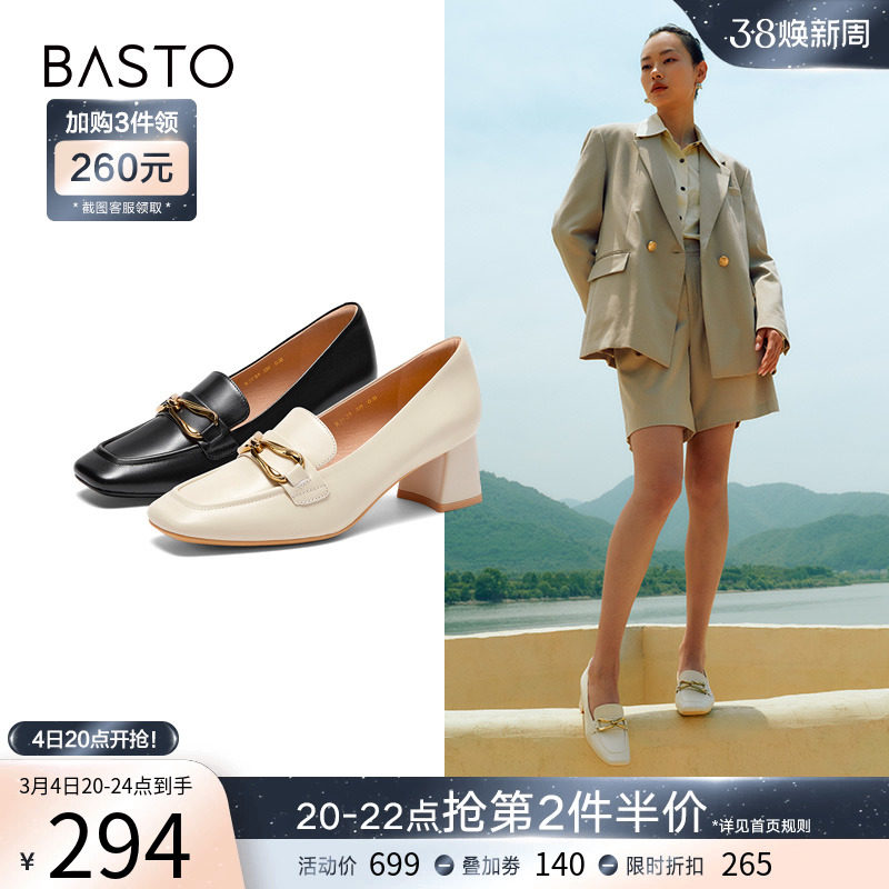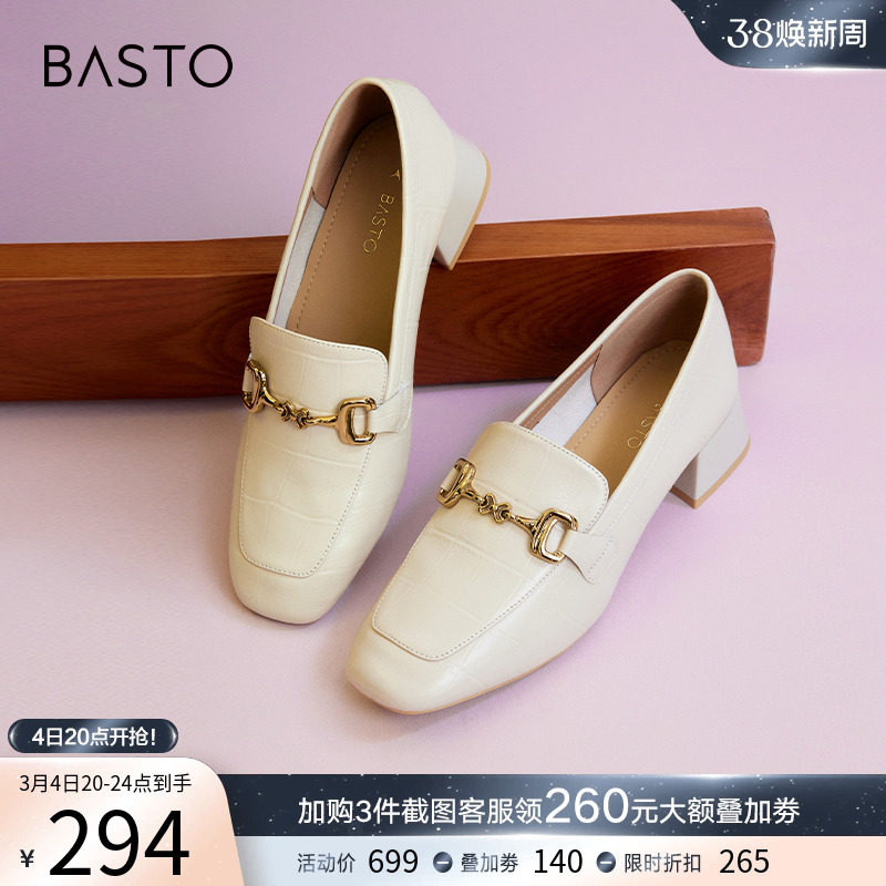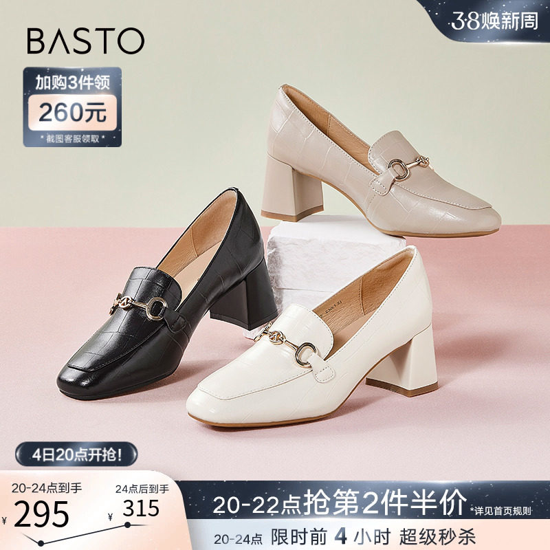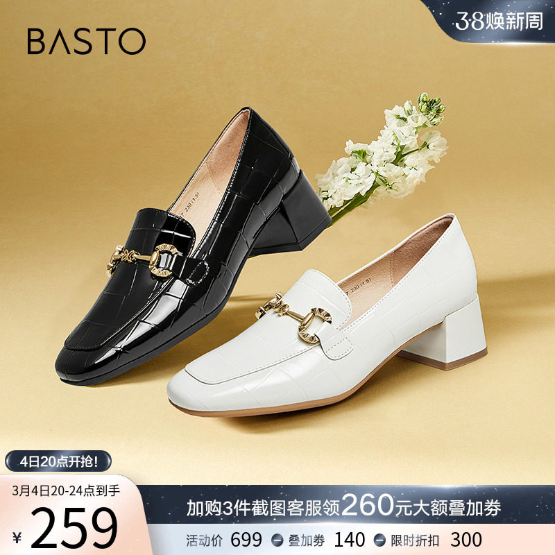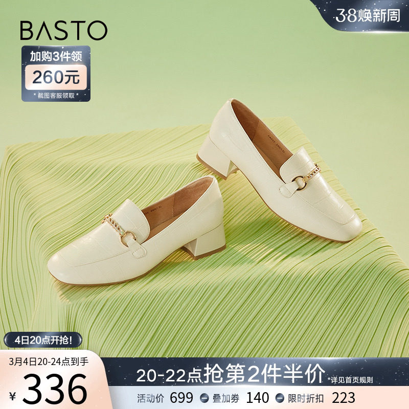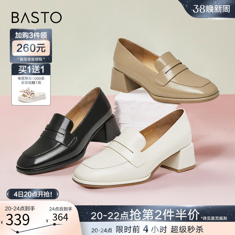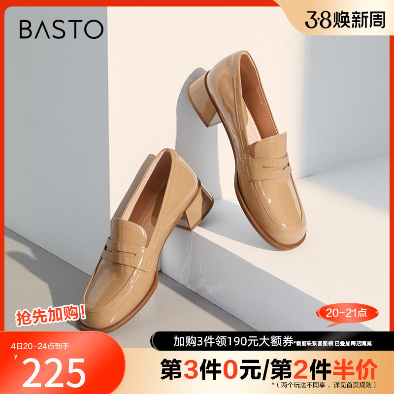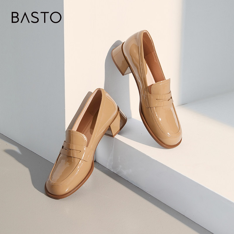 百思图春季新款商场同款通勤粗跟乐福鞋小皮鞋女单鞋VIQ04AA3