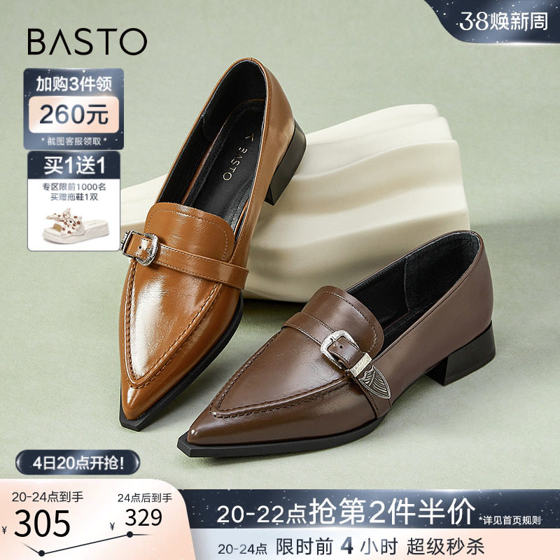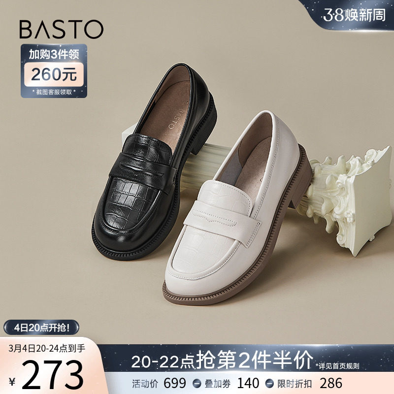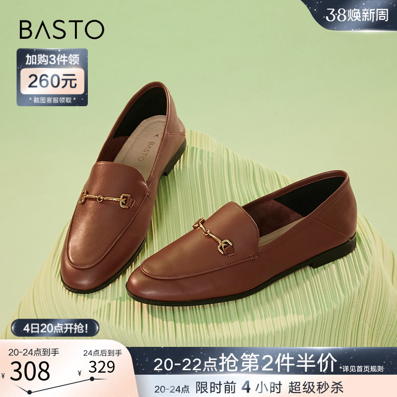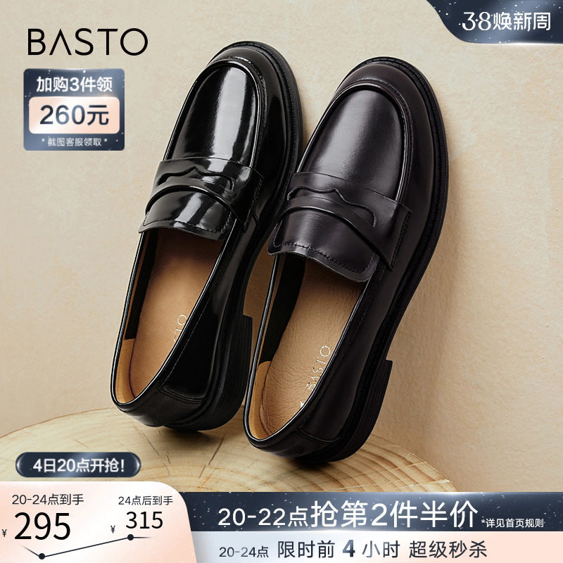 百思图24春商场新款英伦风金币乐福鞋小皮鞋一脚蹬女单鞋MA237AA4