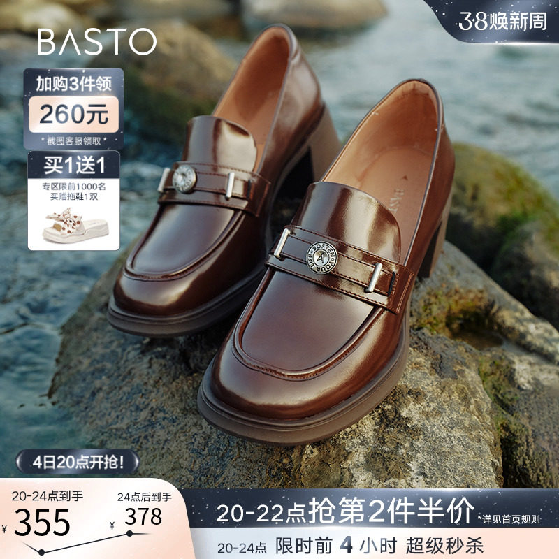百思图2024春新款商场厚底高级感女单鞋乐福鞋皮鞋TFW40AA4Z
