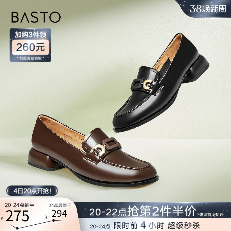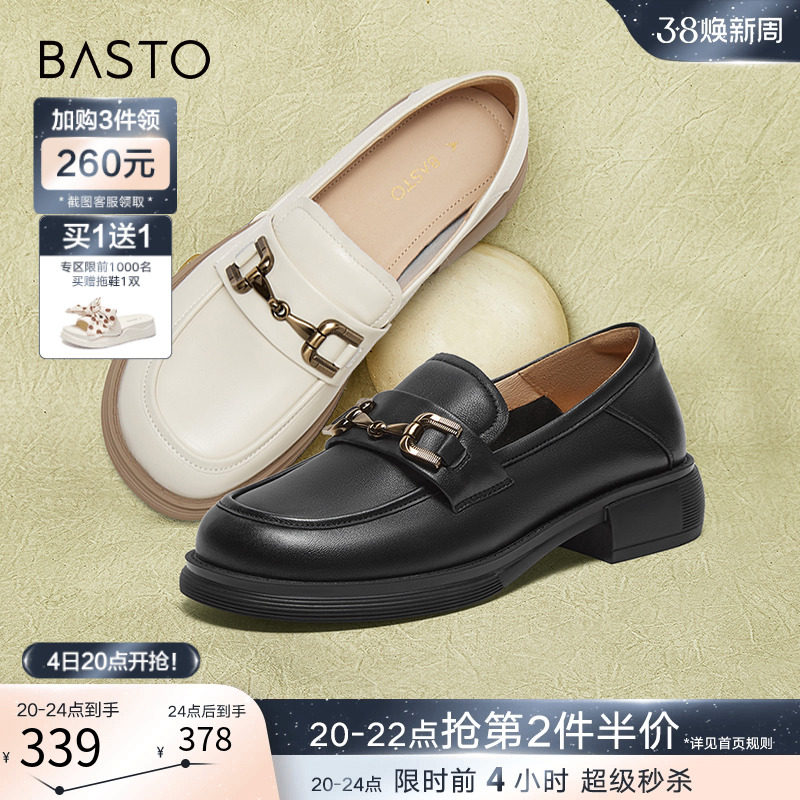 百思图24春商场新款复古英伦真皮乐福鞋小皮鞋粗跟女单鞋VZC01AA4