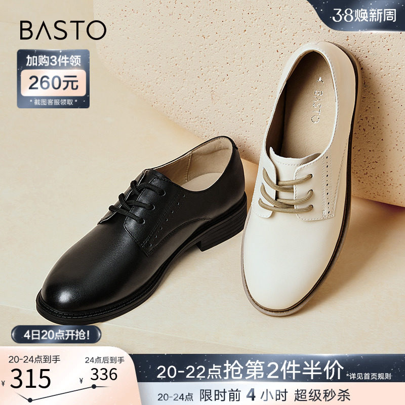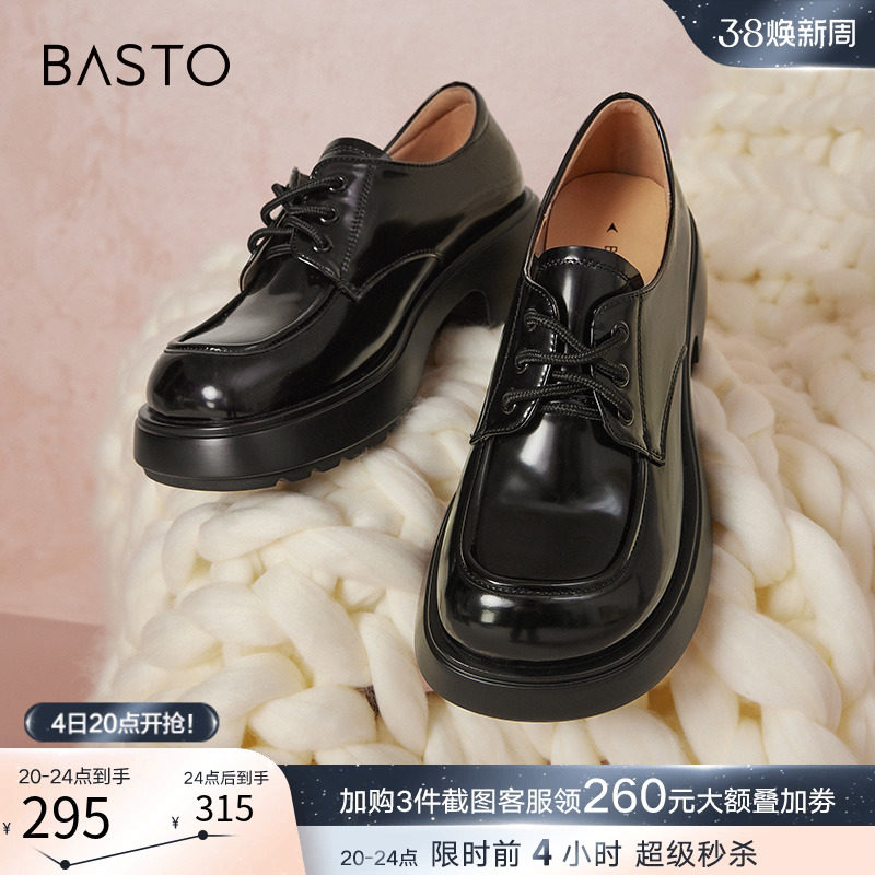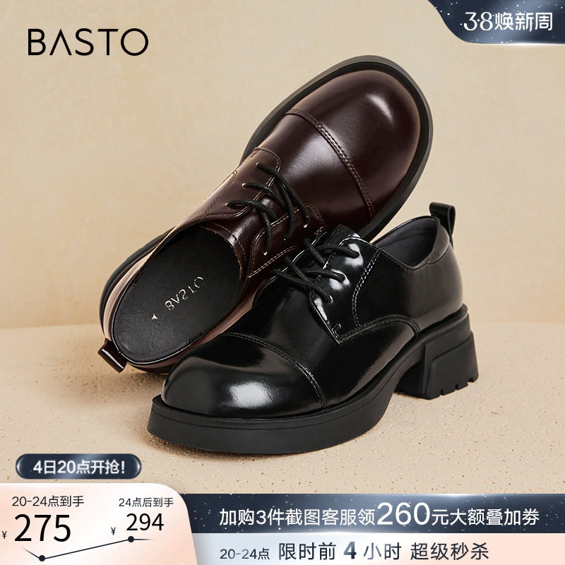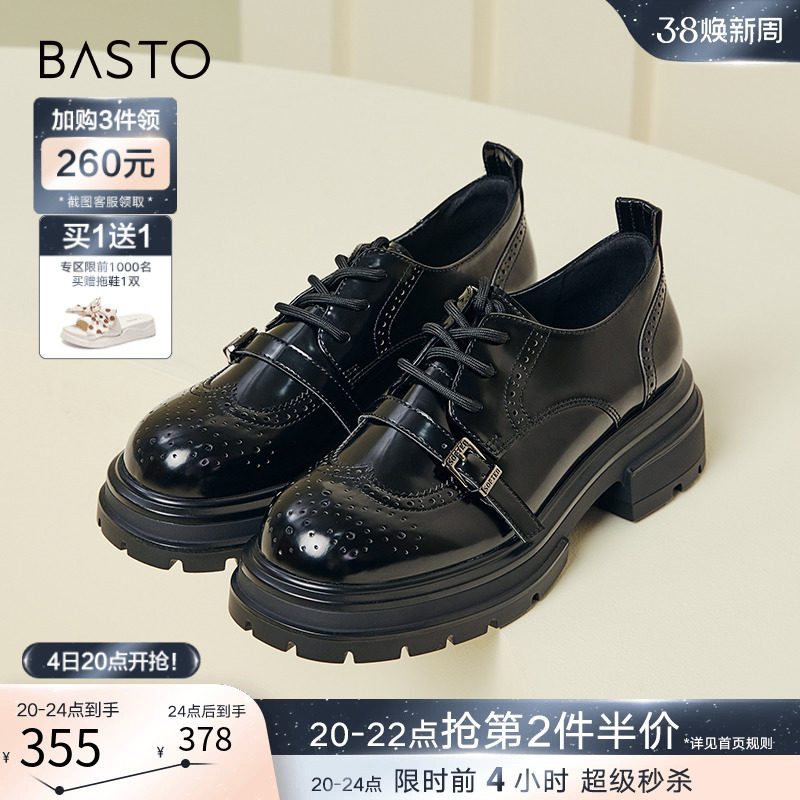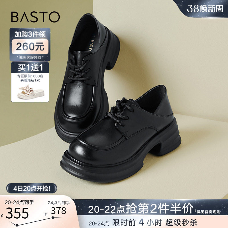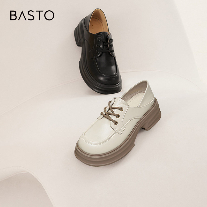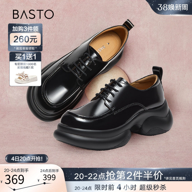 百思图24春新款英伦牛津鞋皮鞋厚底增高女德比乐福鞋单鞋WA271AM4