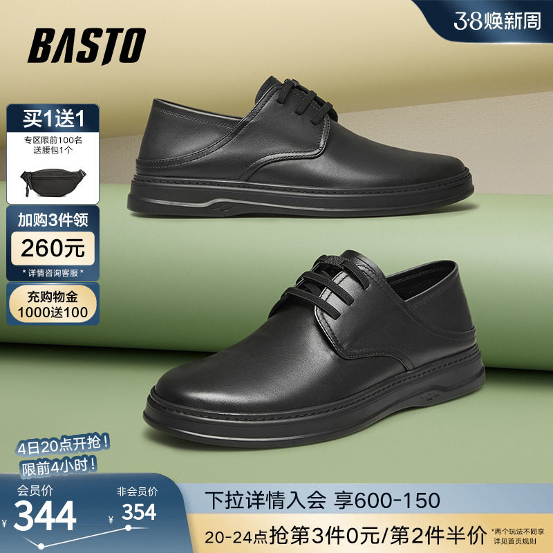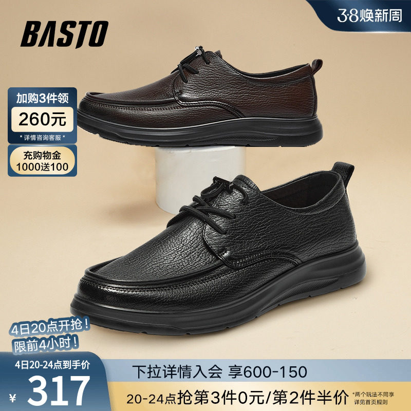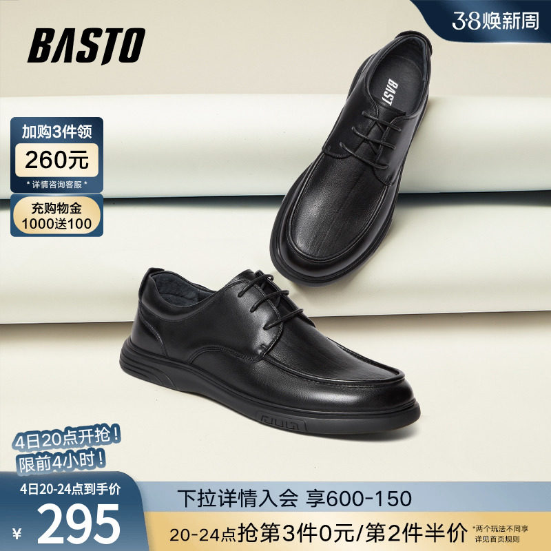 百思图2024春季新款商场同款简约商务平跟男休闲皮鞋23007AM4