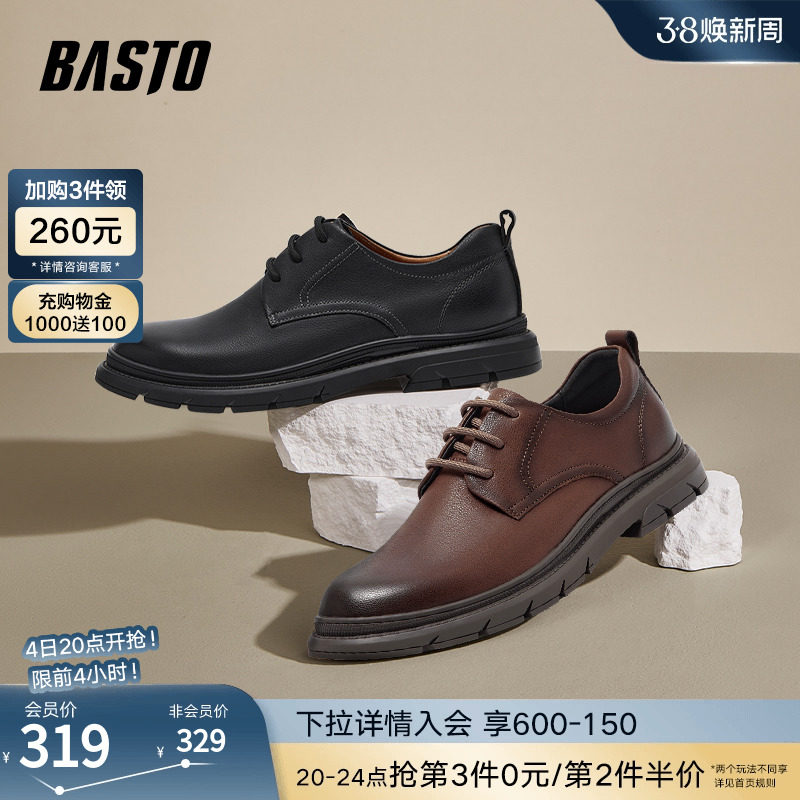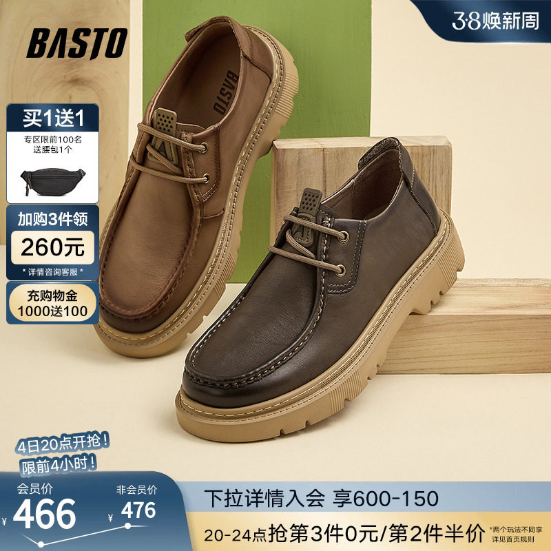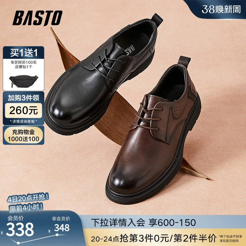 百思图2024春季新款商场同款英伦风大头厚底男休闲皮鞋K8316AM4