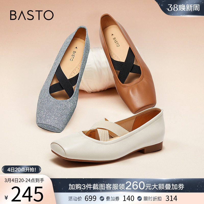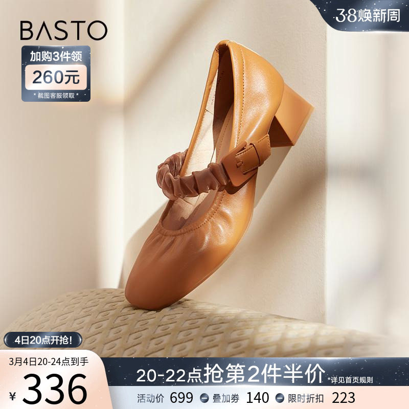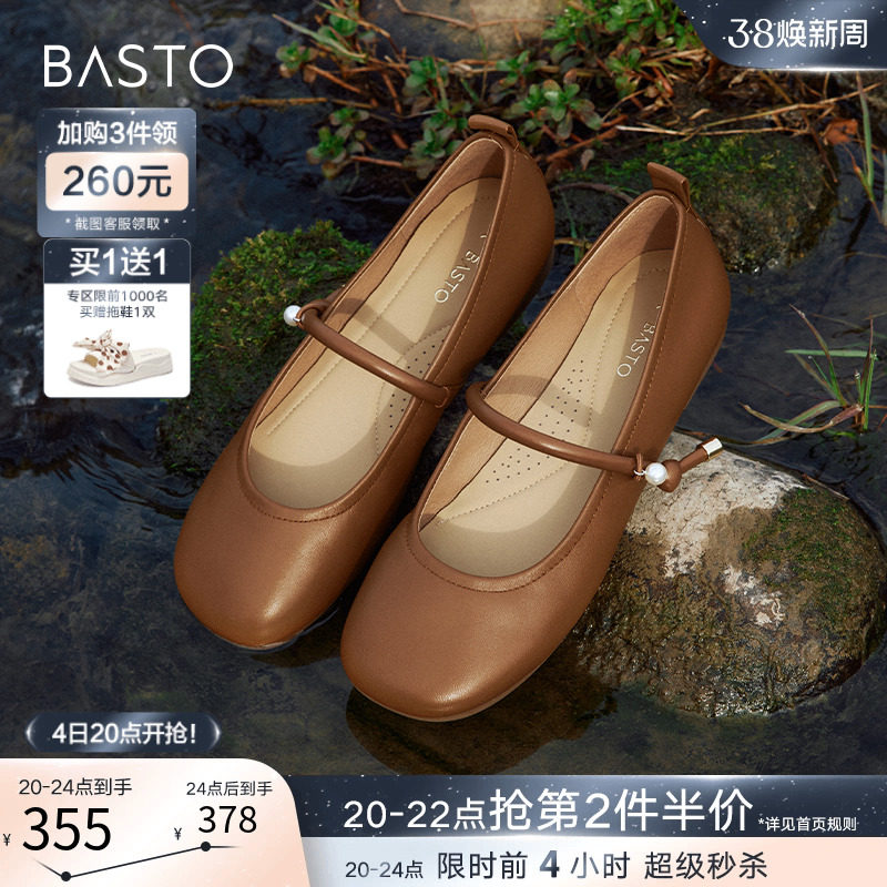 百思图24春新款超软羊皮玛丽珍舒适软底小皮鞋浅口女单鞋VYI03AQ4