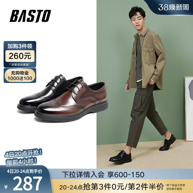 百思图2023秋冬新款商场同款商务布洛克厚底男正装皮鞋XF212CM3