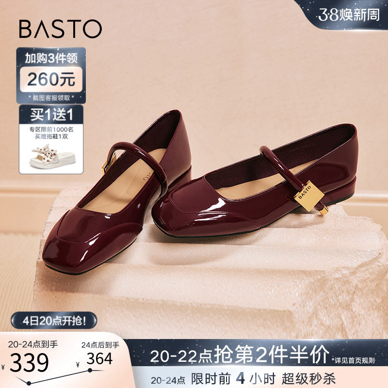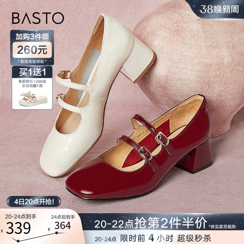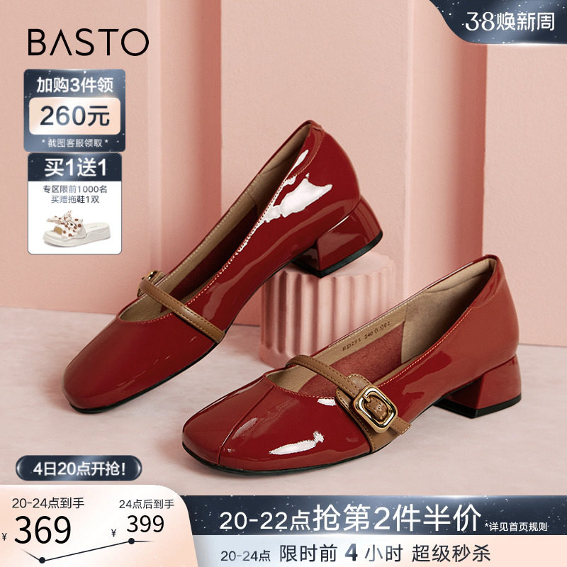 百思图24春商场新款晚晚风玛丽珍小红鞋小皮鞋浅口女单鞋TIK50AQ4