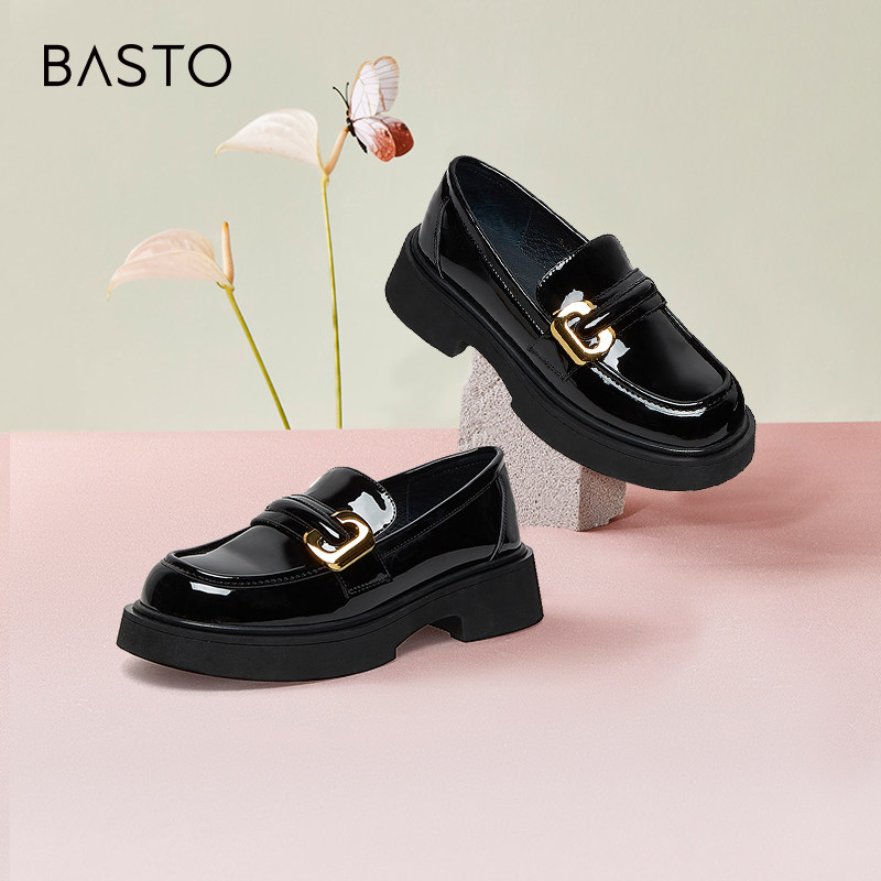 百思图24春商场新款真皮高级感英伦漆皮乐福小皮鞋女单鞋KA816AA4