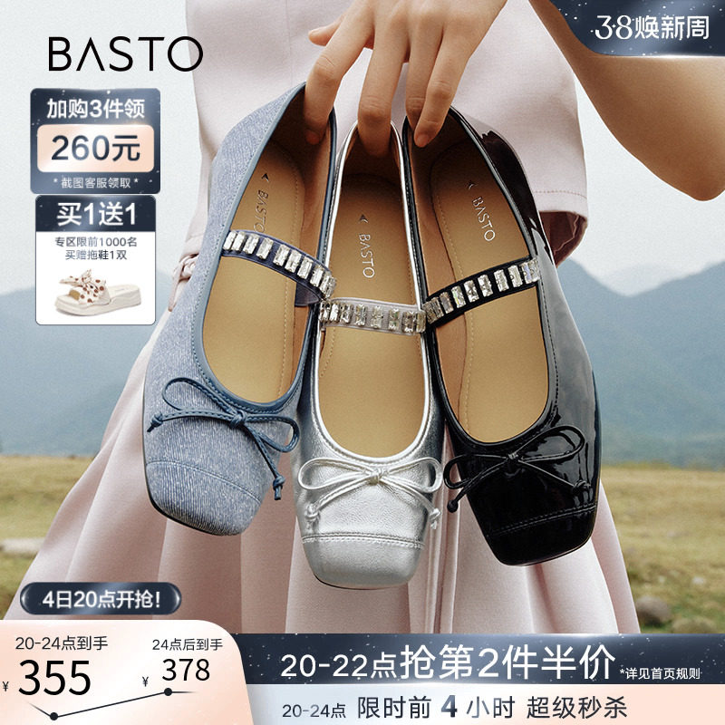 百思图24春商场新款软牛皮蝴蝶结玛丽珍小皮鞋女浅口单鞋TIK55AQ4